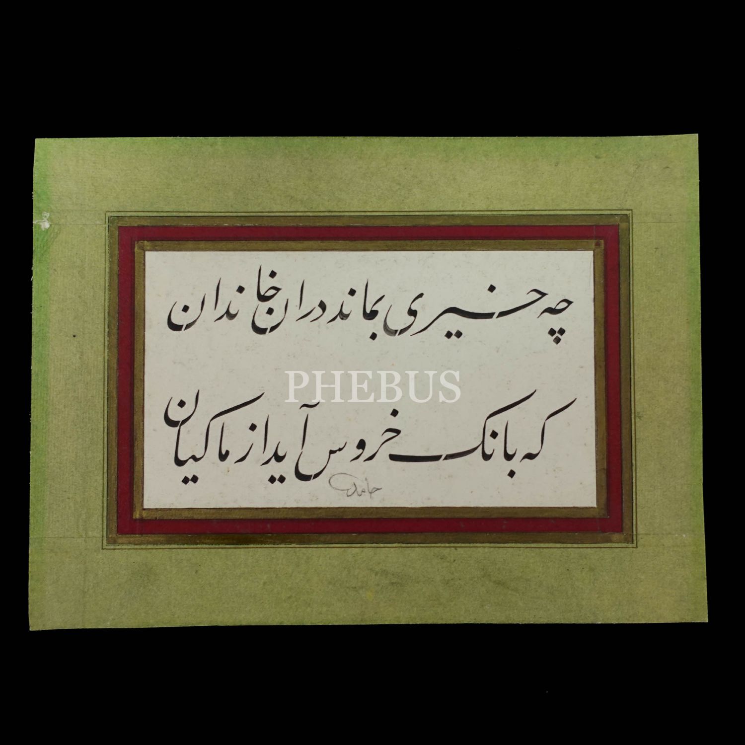 Kurşun kalemle Hamid imzalı talik yazı, farsça beyit yazılı, 25x18 cm...