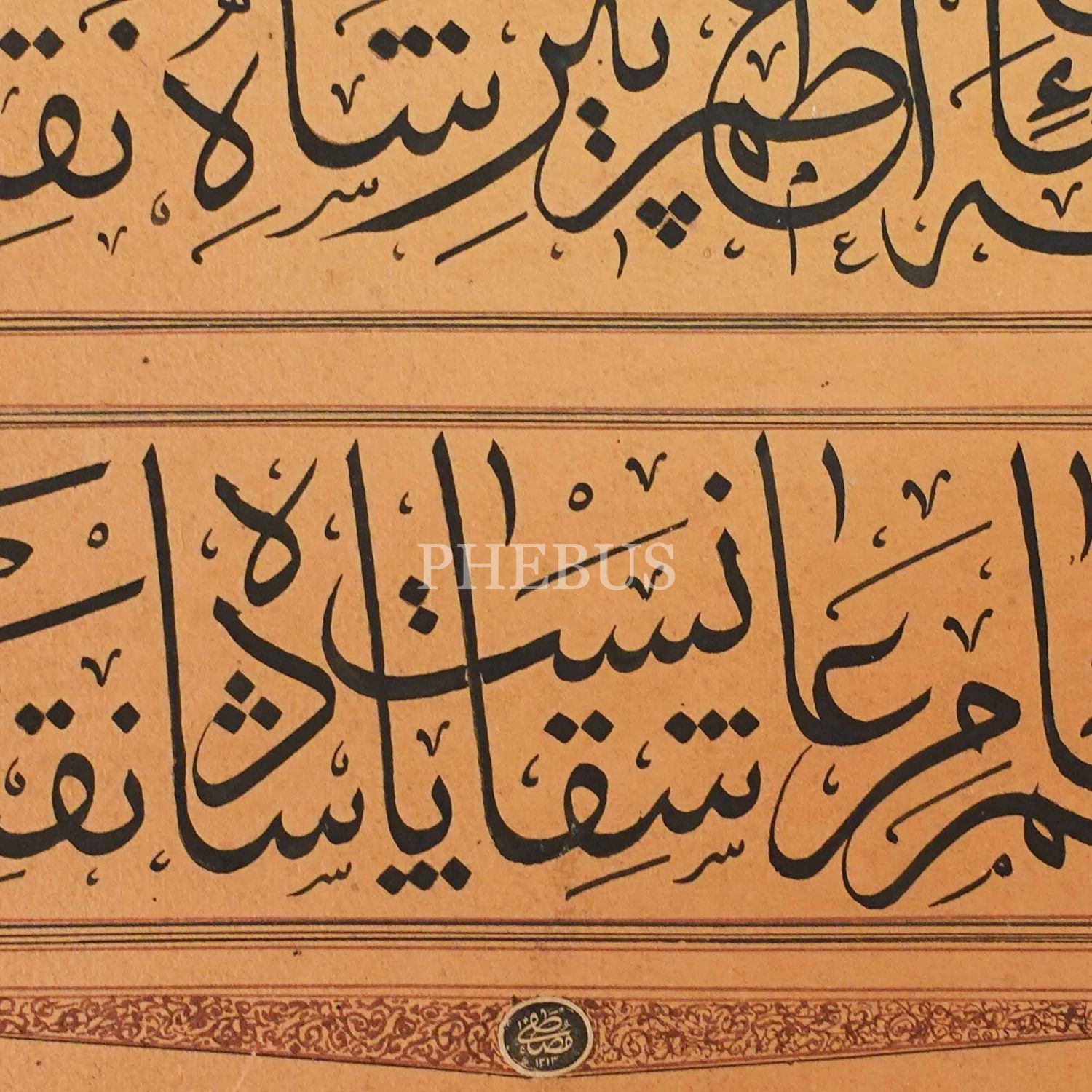 Mustafa ketebeli sülüs şiir, 1313 tairhli, 36x23 cm...