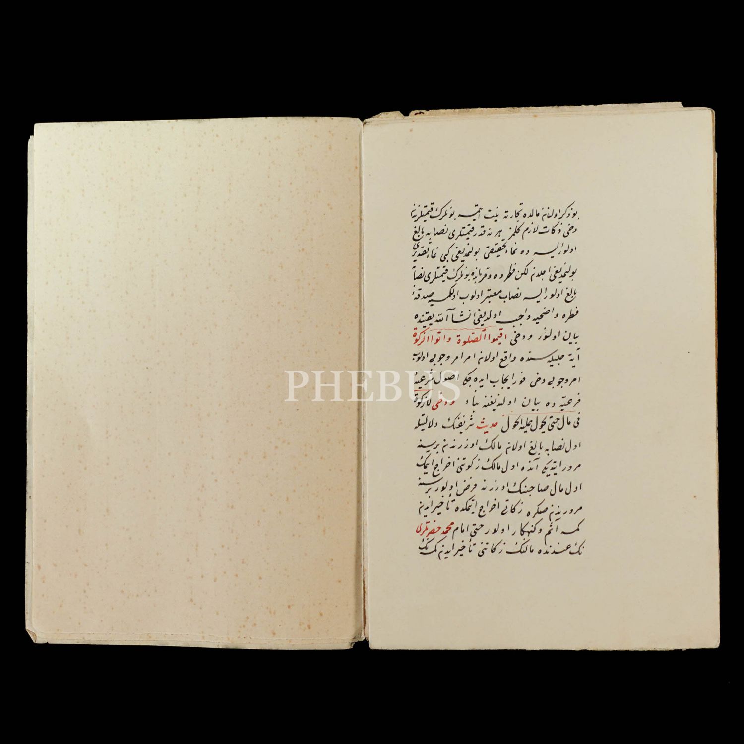 Zekat hakkında Osmanlıca bir risale, ince talik yazı ile yazılmış, 13 sayfa, metnin sonu tamamlanmadan bırakılmıştır, 18x12 cm...