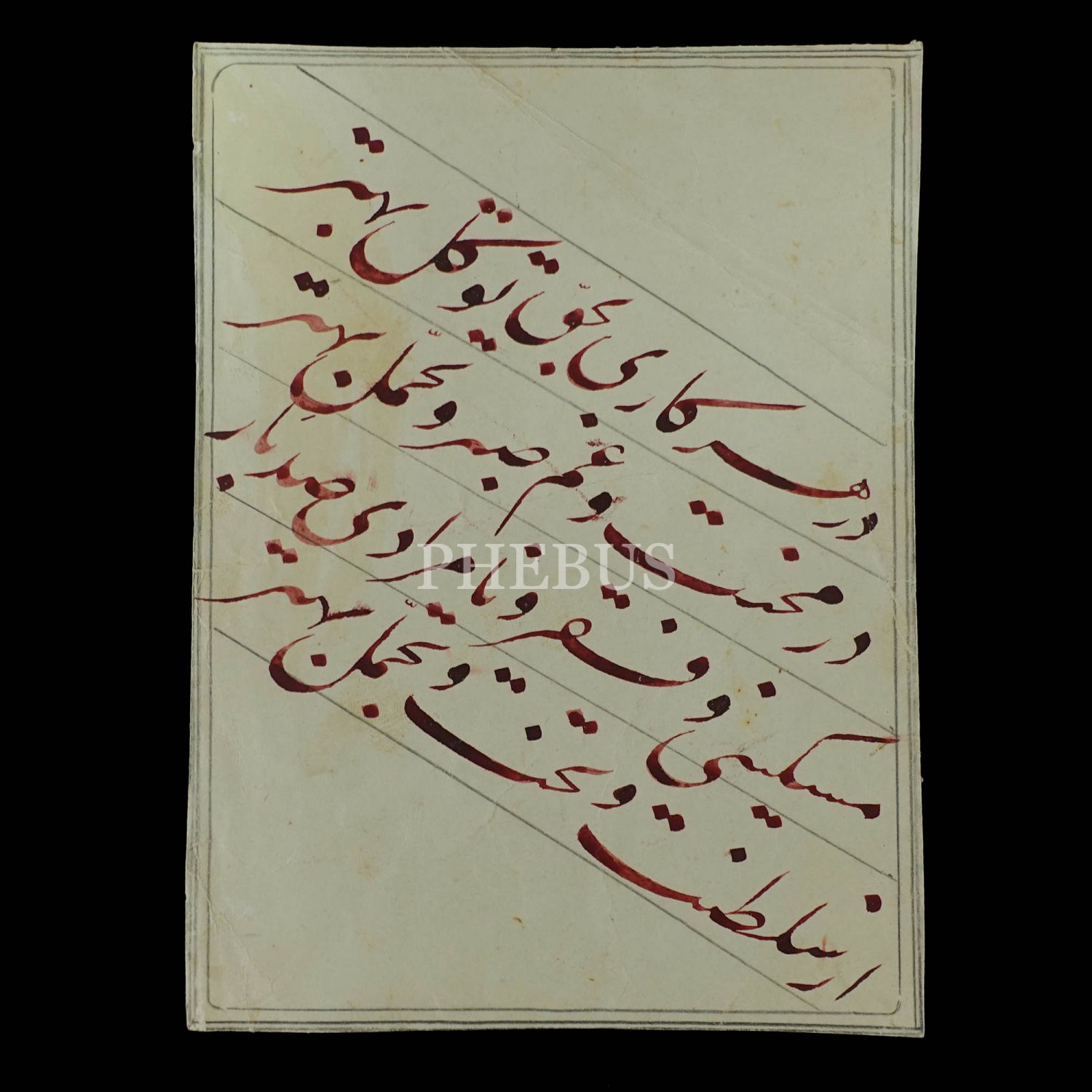 Mail talik yazı, sabır ve tahammülü öğütleyen Farsça bir şiir yazılıdır, 21x15 cm...