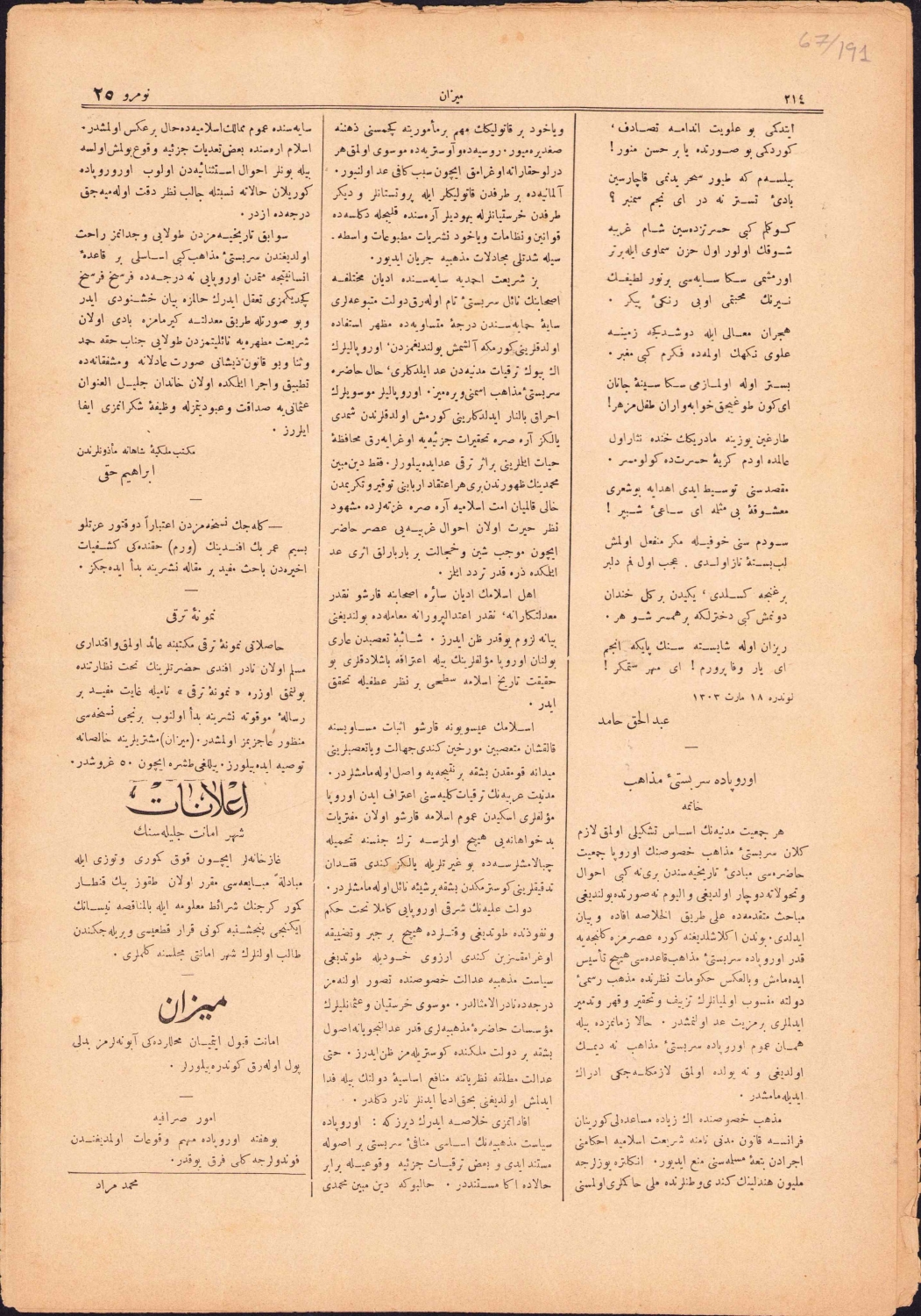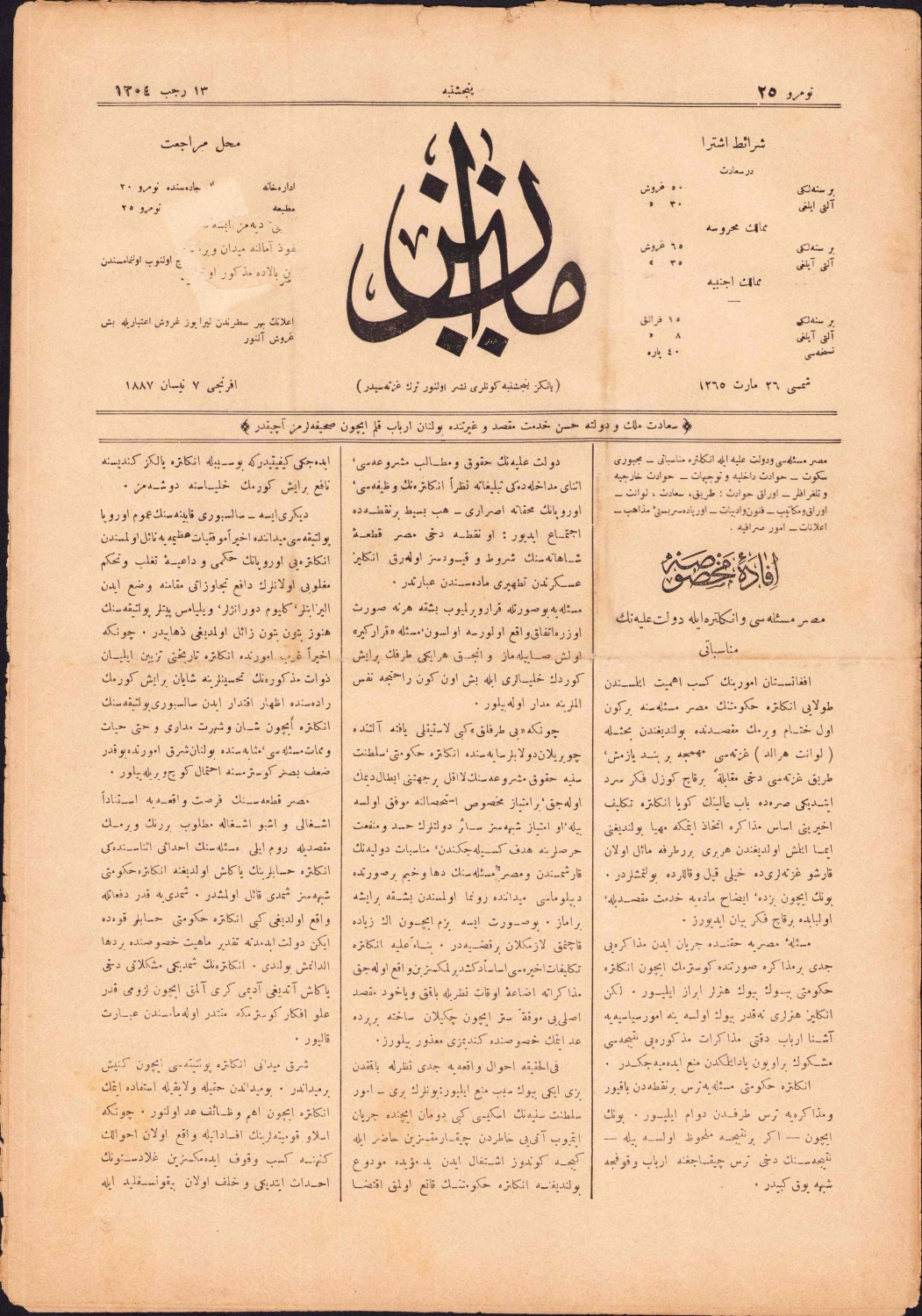 Osmanlıca Mizan gazetesi, 1304, bir kenarı kopuk, 8 sayfa, 28x40 cm