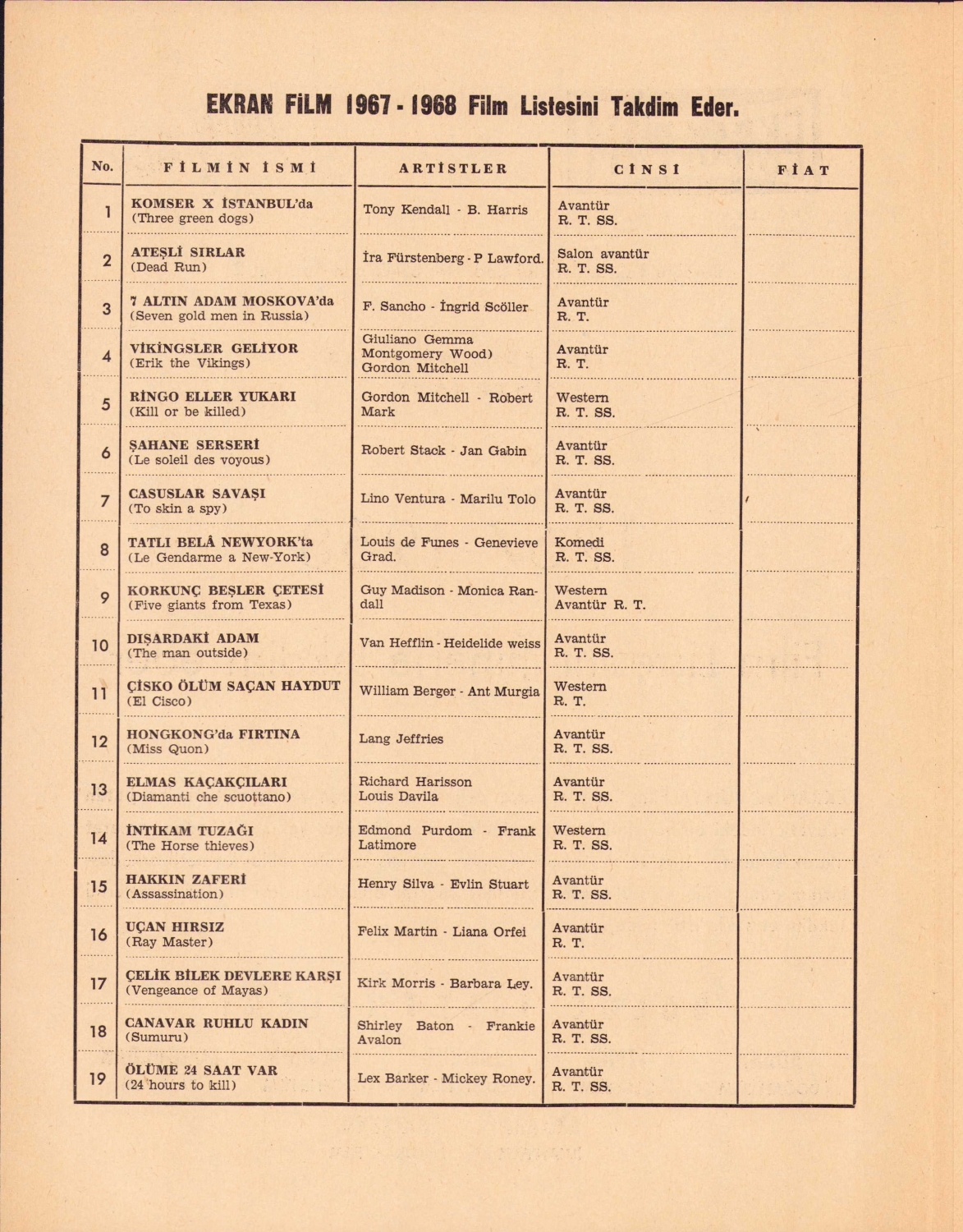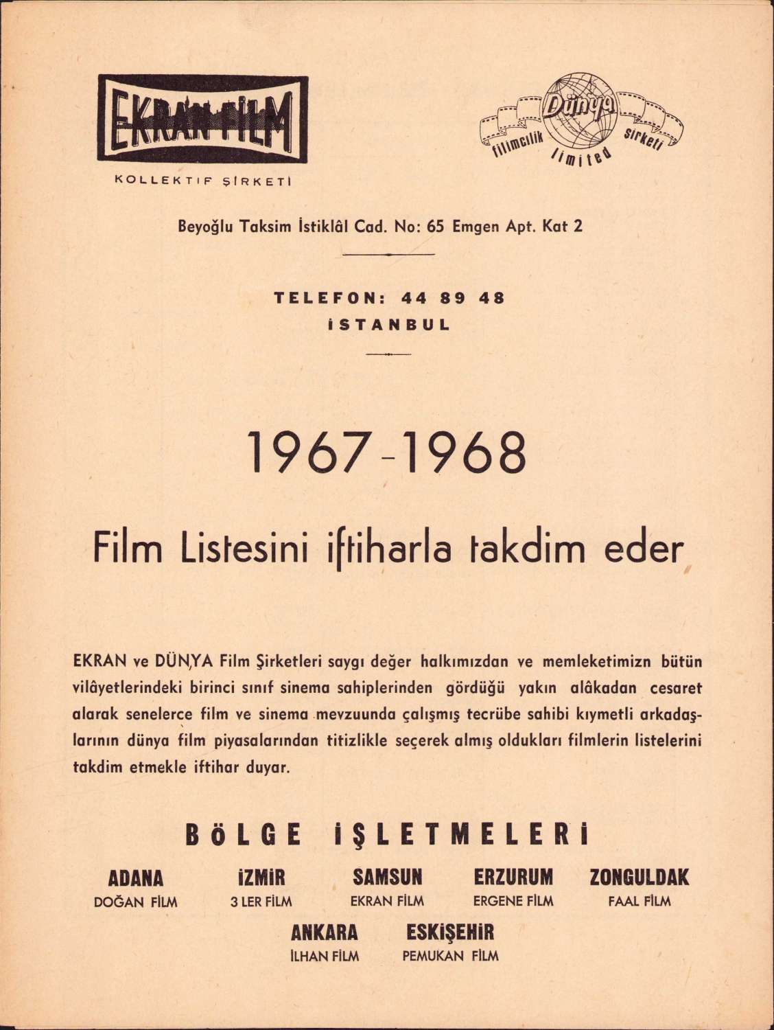 Ekran Film 1967 - 1968 film listesi, 4 sayfa, 20x28 cm