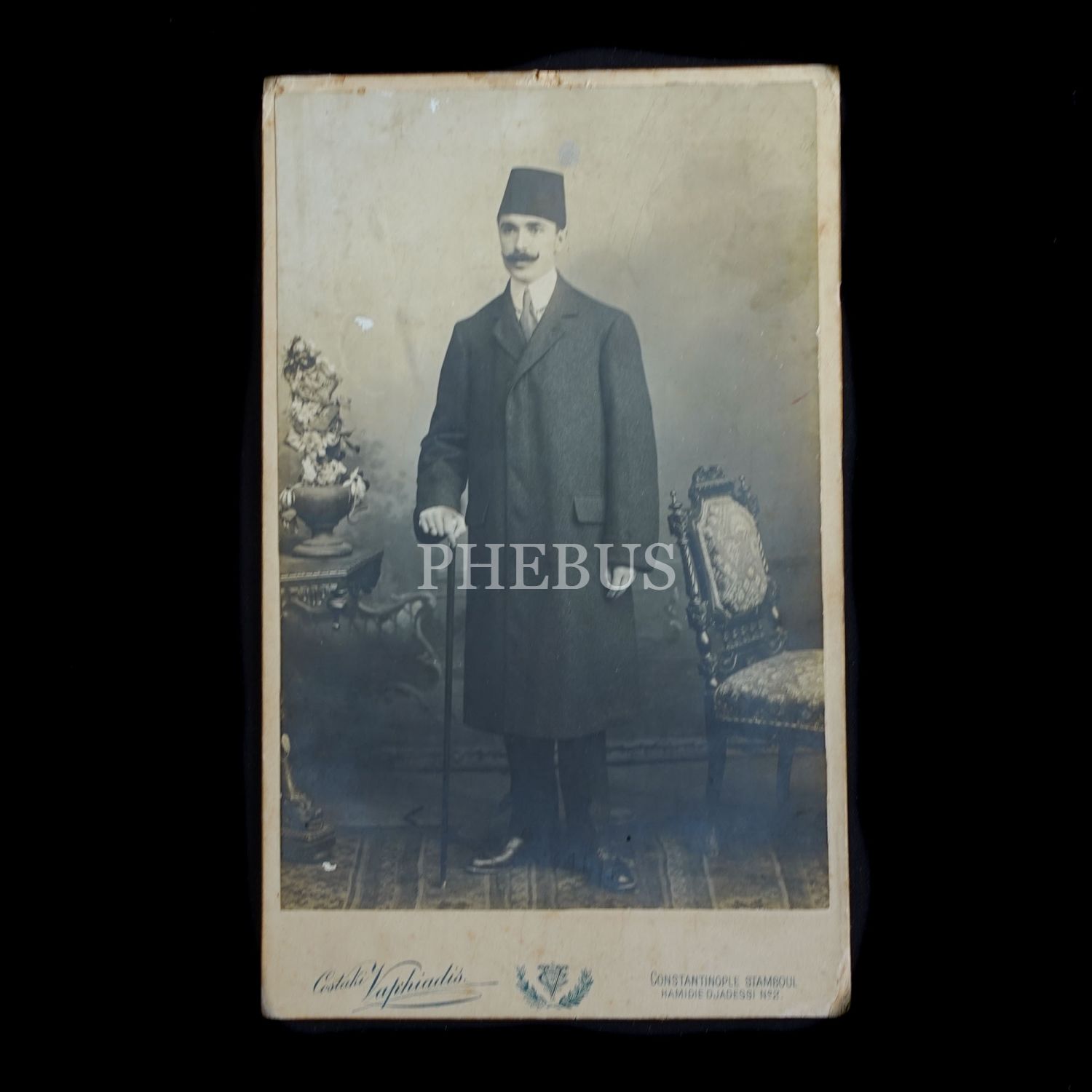 Bastonlu bir beyefendinin kabin fotoğrafı, Costaki Vaphiadis, Constantinople, 13x22 cm...