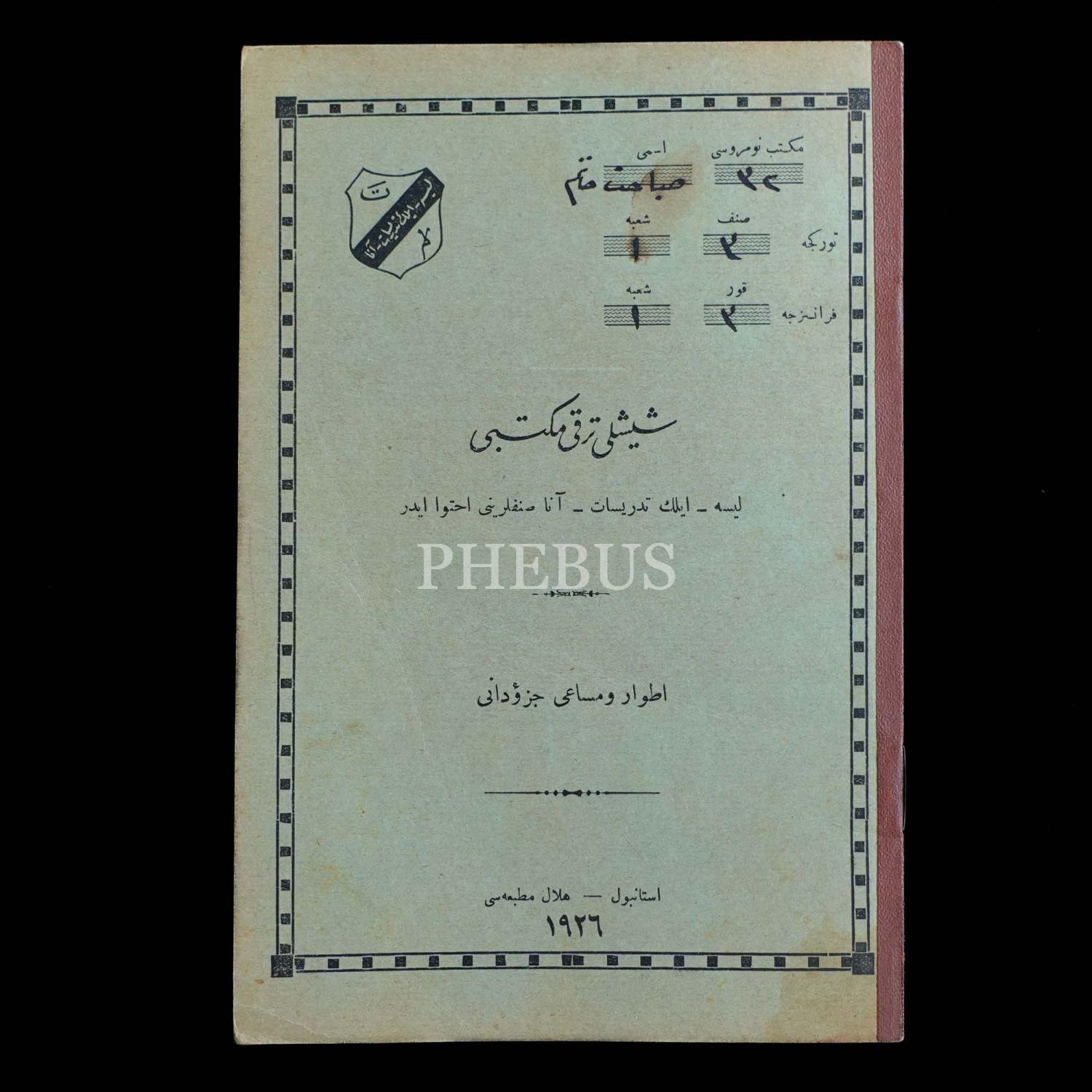 Şişli Terakki Mektebi´nde 1926 senesinde tutulmuş öğrenci karnesi, 7 sayfa, 20x13 cm...
