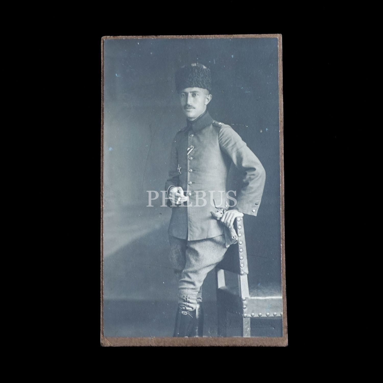Elinde sigarasıyla poz veren (Çanakkale) Harp Madalyalı bir Osmanlı subayının portre fotoğrafı, 10x16 cm...