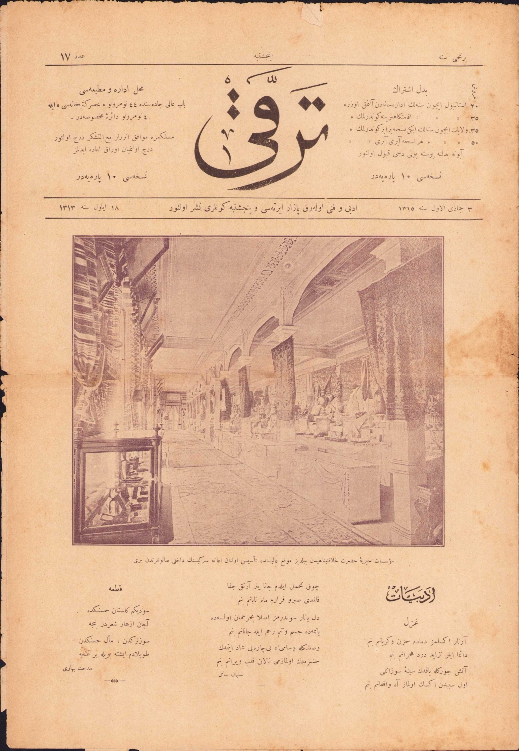 Osmanlıca Terakki gazetesi, 1313, "Yıldız Mevki Aliyesinde Tesis Oluna İane Sergisinin Dahili Salonlarından Biri",