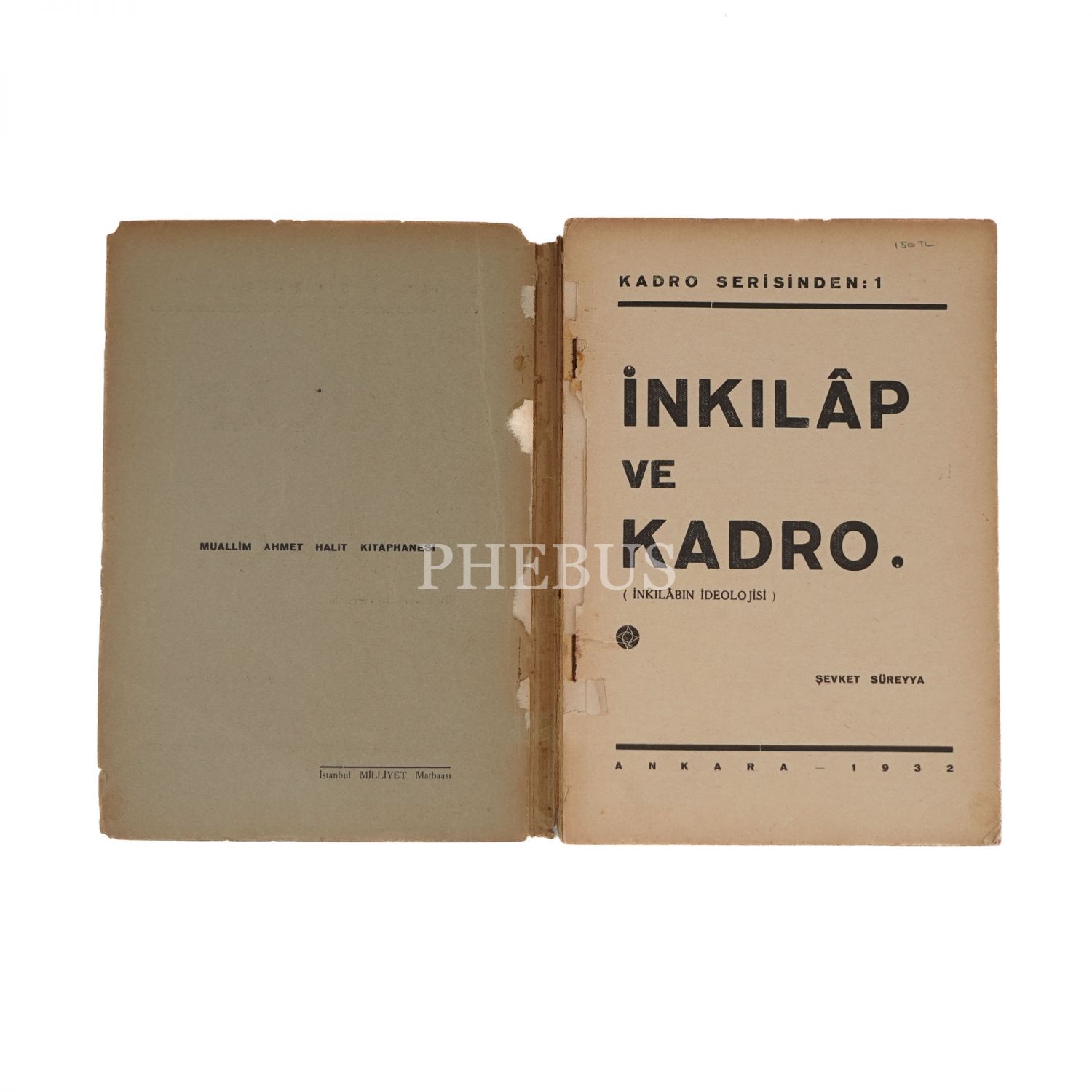 İNKILÂP VE KADRO (İnkılâbın İdeolojisi), Şevket Süreyya, 1932, Milliyet Matbaası, 173 sayfa, 17x24 cm...