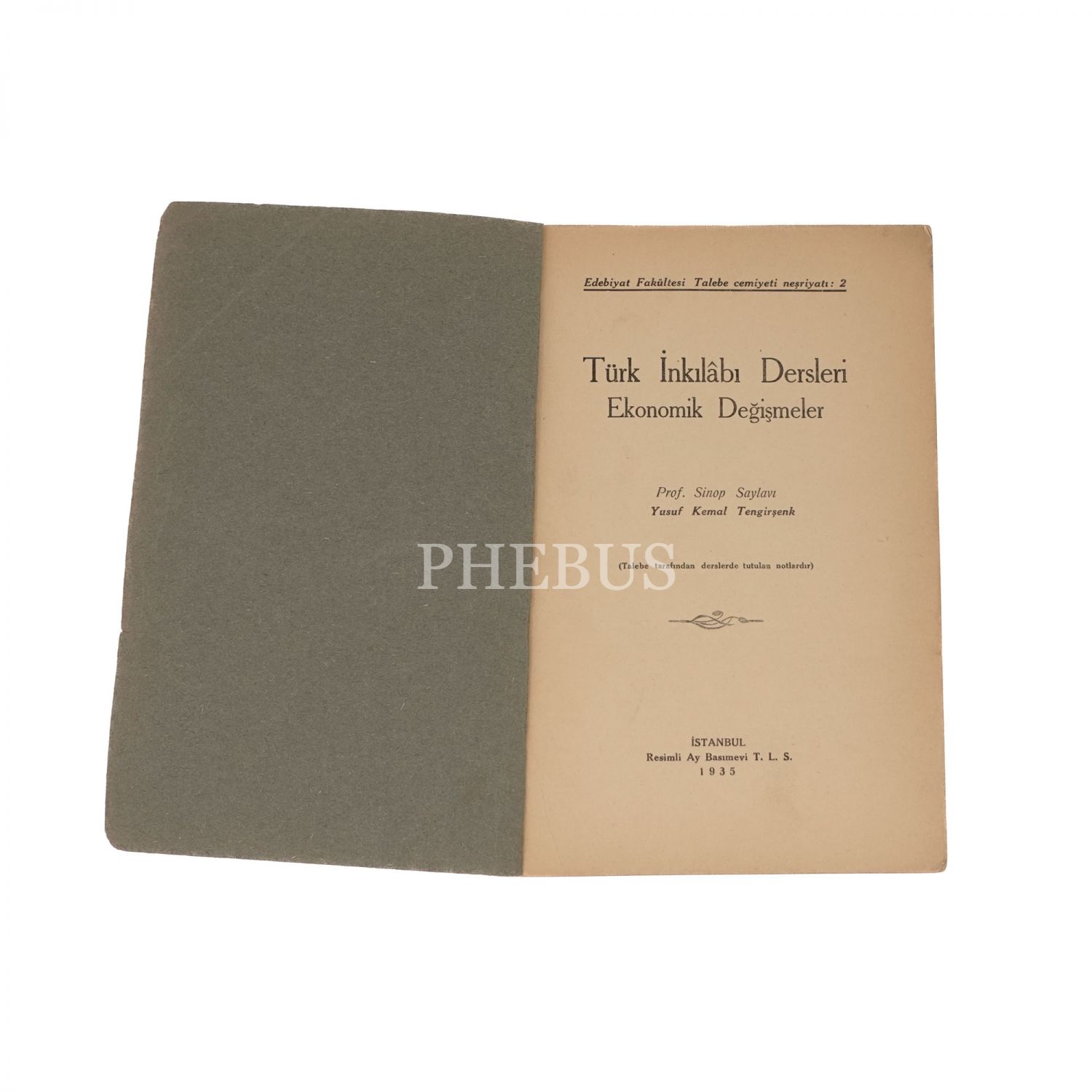 TÜRK İNKILÂBI DERSLERİ: EKONOMİK DEĞİŞMELER, Yusuf Kemal Tengirşenk, 1935, Resimli Ay Basımevi, 61 sayfa, 17x24 cm...