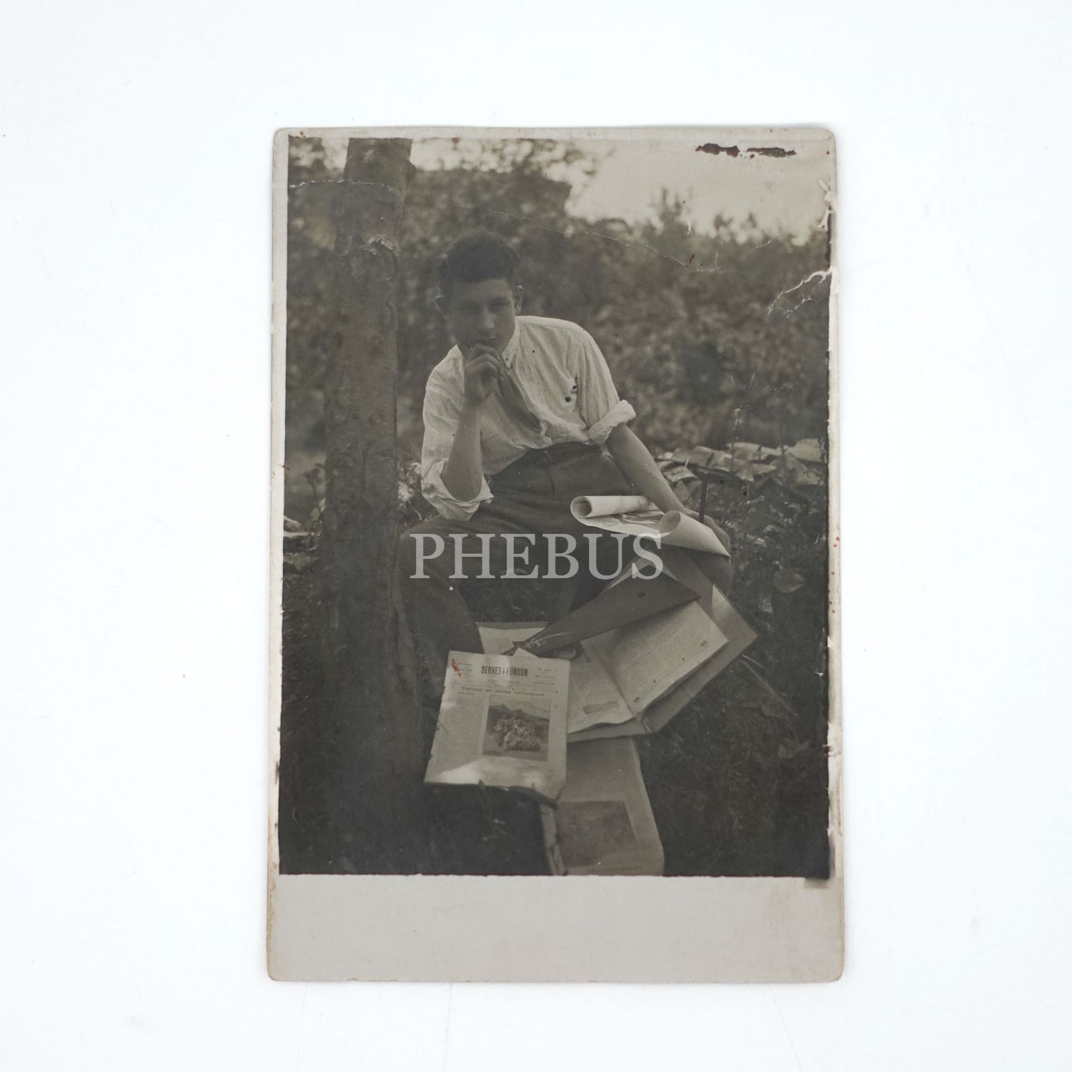 Önünde Servet-i Fünun´un Fransızca nüshasının net olarak seçilebildiği birtakım dergilerlerle poz veren genç delikanlı, 9x14 cm...