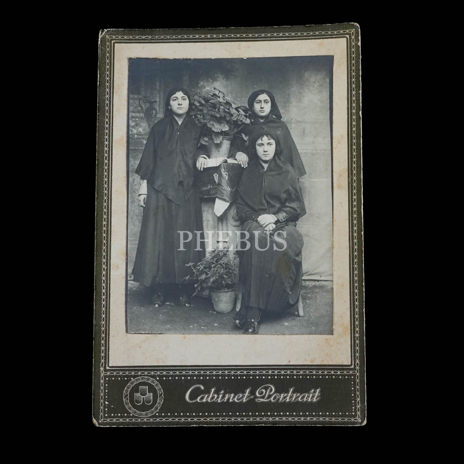 Osmanlı döneminden üç genç hanımefendinin kabin fotoğrafı, 11x17 cm...