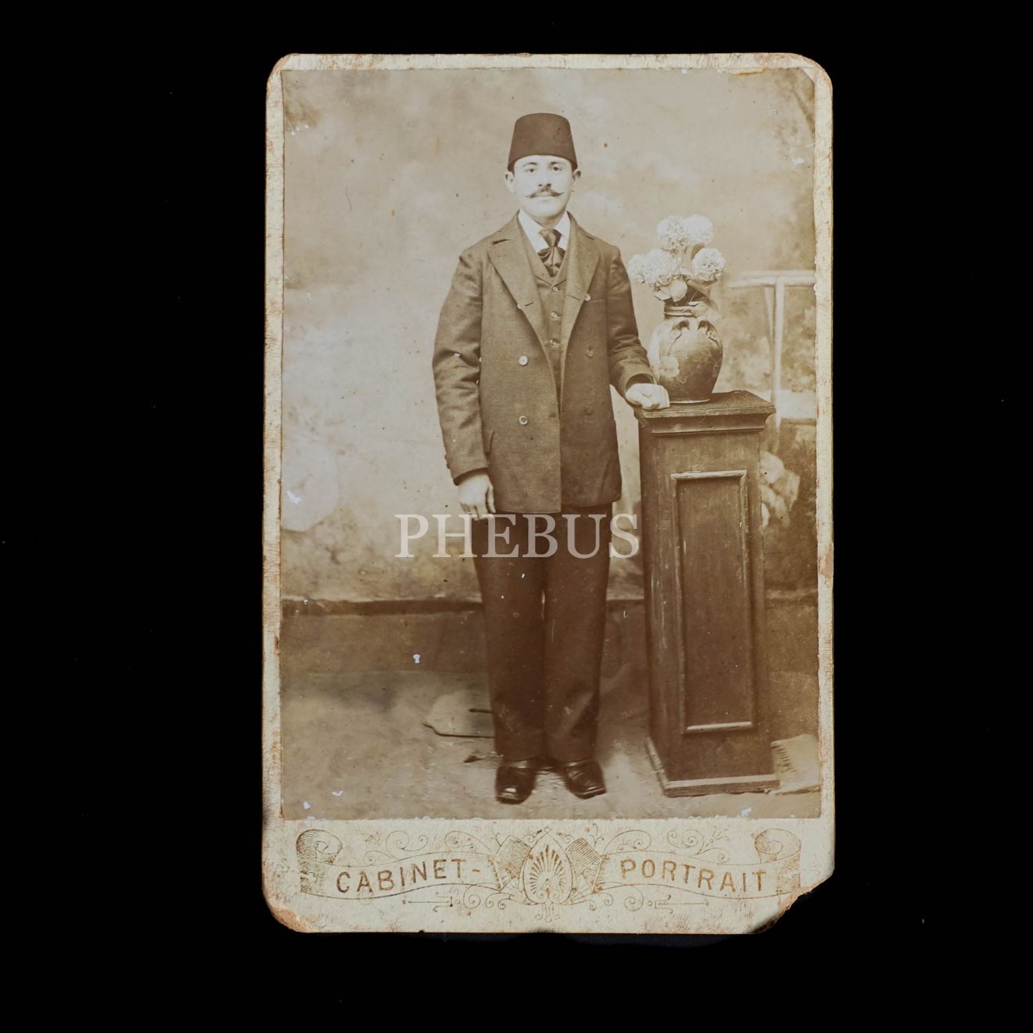 Fesli bir beyefendinin kabin fotoğrafı, Photographie Tchamlidja, Scutari (Çamlıca Fotoğrafhanesi, Üsküdar), 11x17 cm...