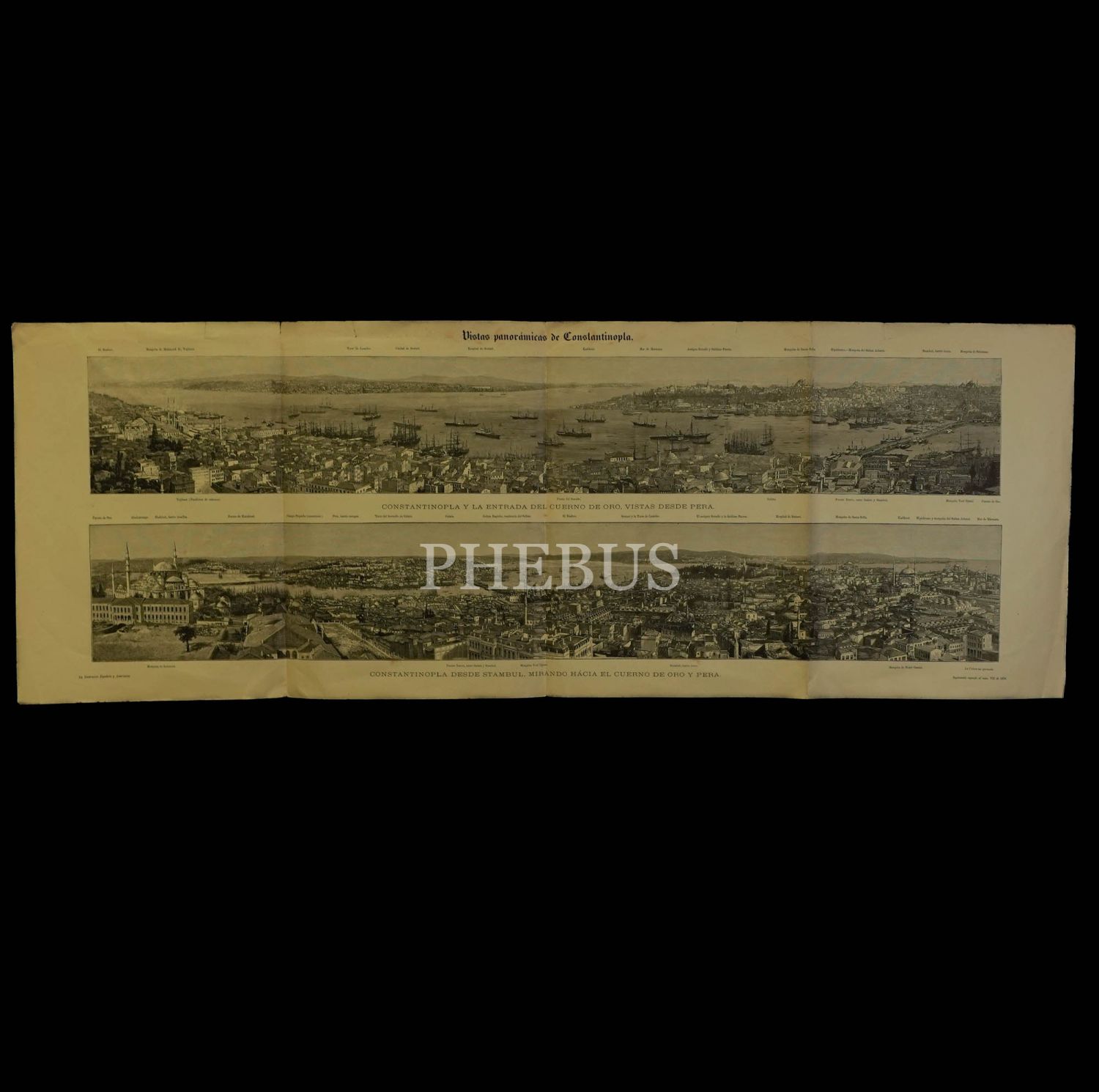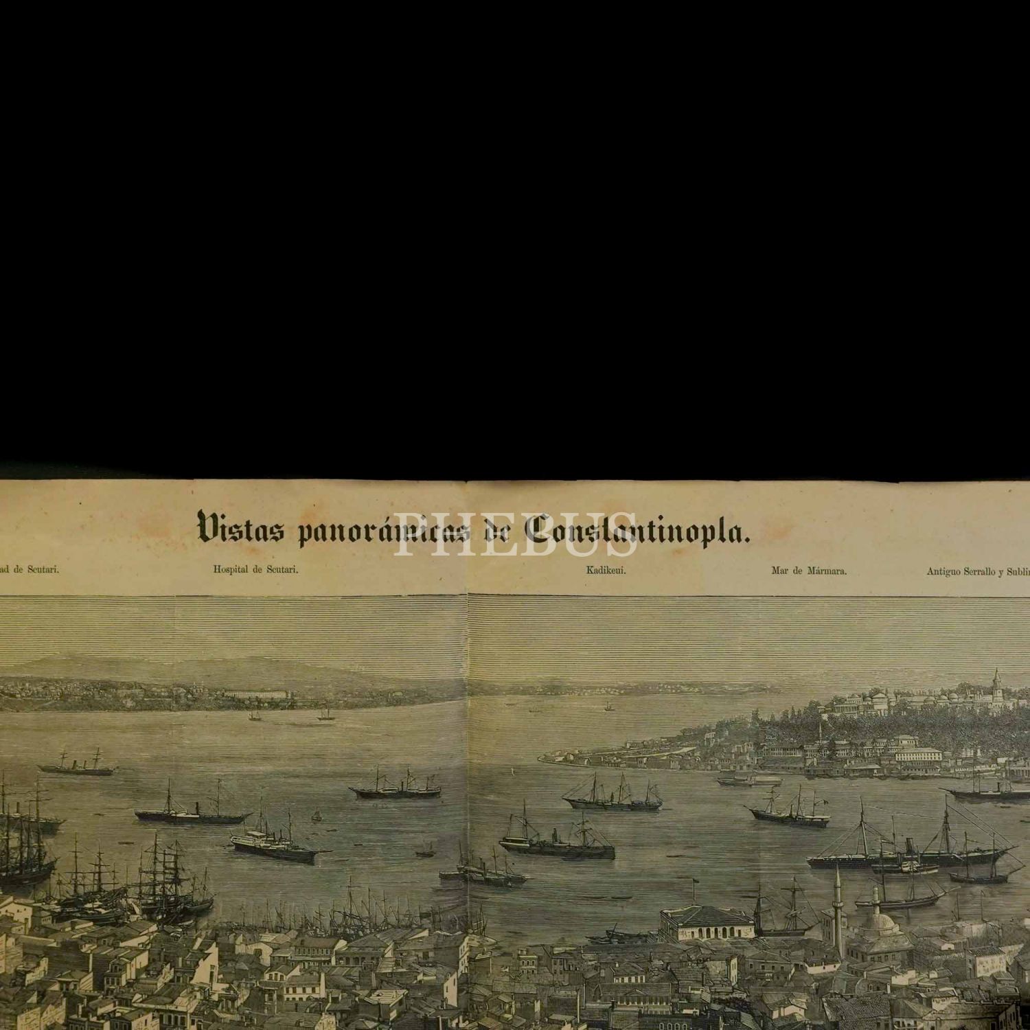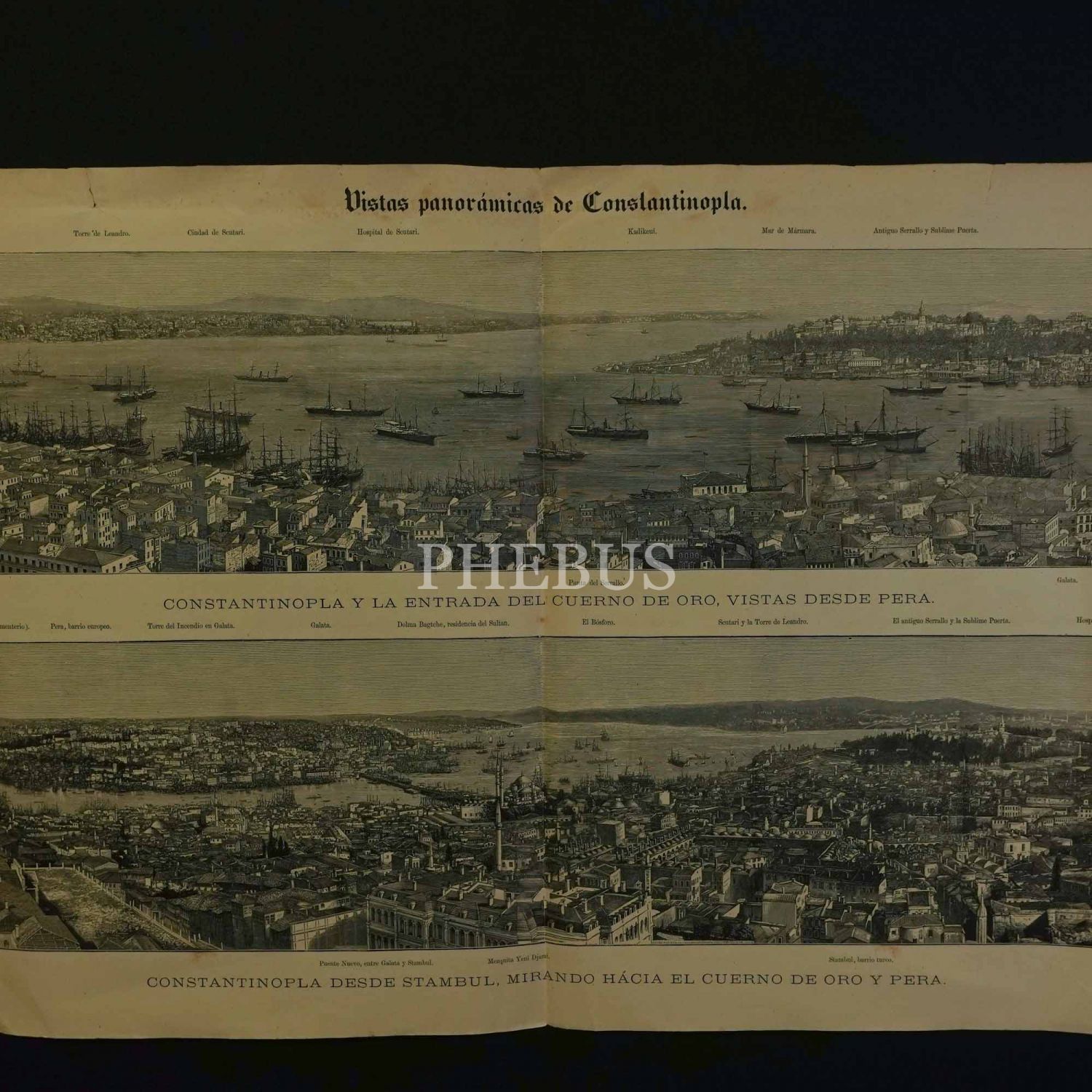 Galata Kulesi´nden ve Beyazıt Yangın Kulesi´nden alınmış çifte İstanbul panoraması, "Vistas panoramicas de Constantinopla", 116x41 cm...
