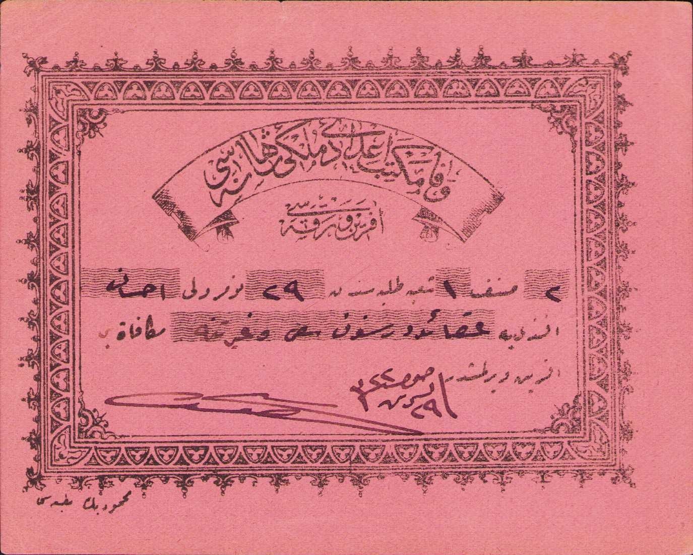 Osmanlıca Vefa Mektebi İdadisi Mülkiye-i Şahane aferin belgesi, 1322, 11x8 cm