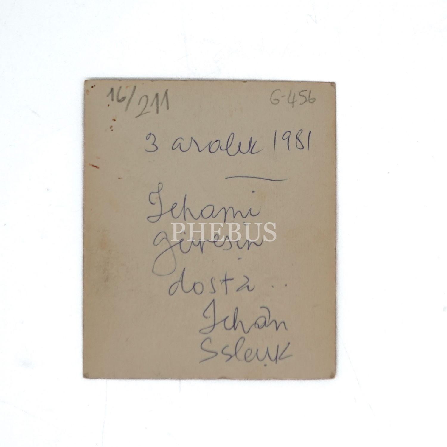 İlhan Selçuk´tan bestekar İlhami Güreşin´e ithaflı ve imzalı fotoğraf, 3 Aralık 1981, 8x9 cm...