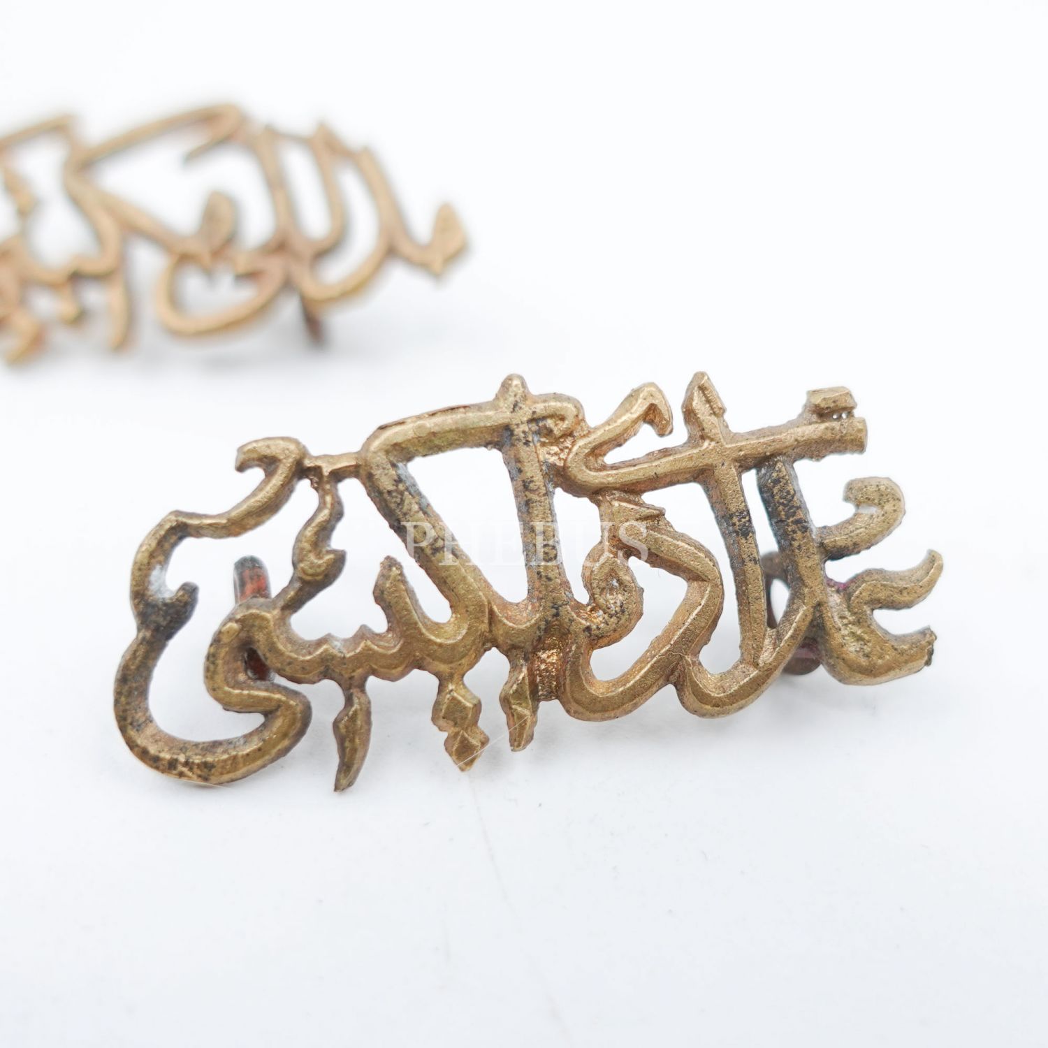 "Midilli Mektebi İdadî-i Mülkîsi" yazılı iki parça halinde mektep yaka rozeti, uzunlukları 4 cm...