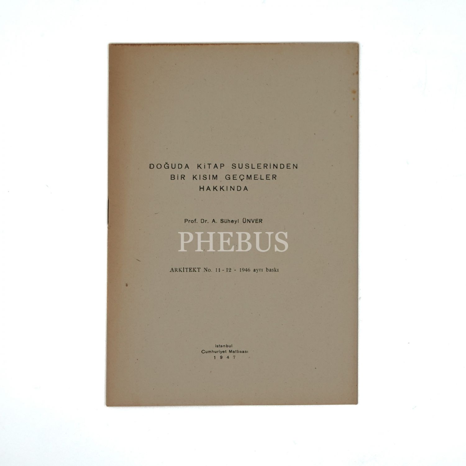 DOĞUDA KİTAP SÜSLERİNDEN BİR KISIM GEÇMELER HAKKINDA, A. Süheyl Ünver, 1947, Cumhuriyet Matbaası, 13 sayfa, 14x20 cm...