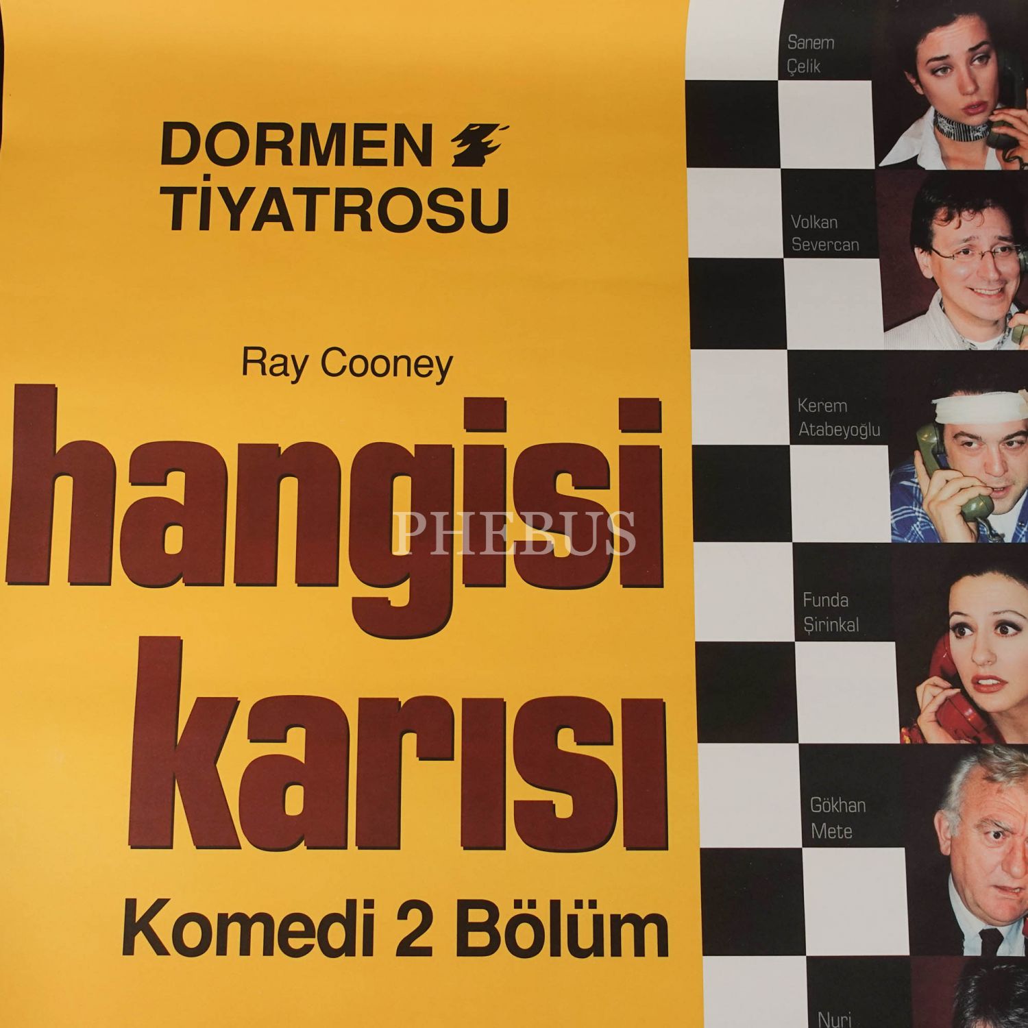 HANGİSİ KARISI, Ray Cooney, "Komedi 2 Bölüm", çeviren: Orhan Azizoğlu - yöneten: Çetin Akcan, Dormen Tiyatrosu, 68x48 cm...