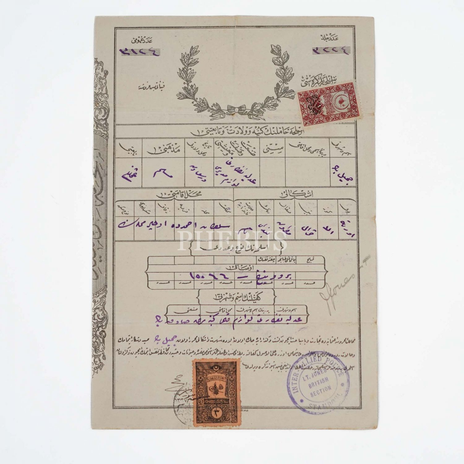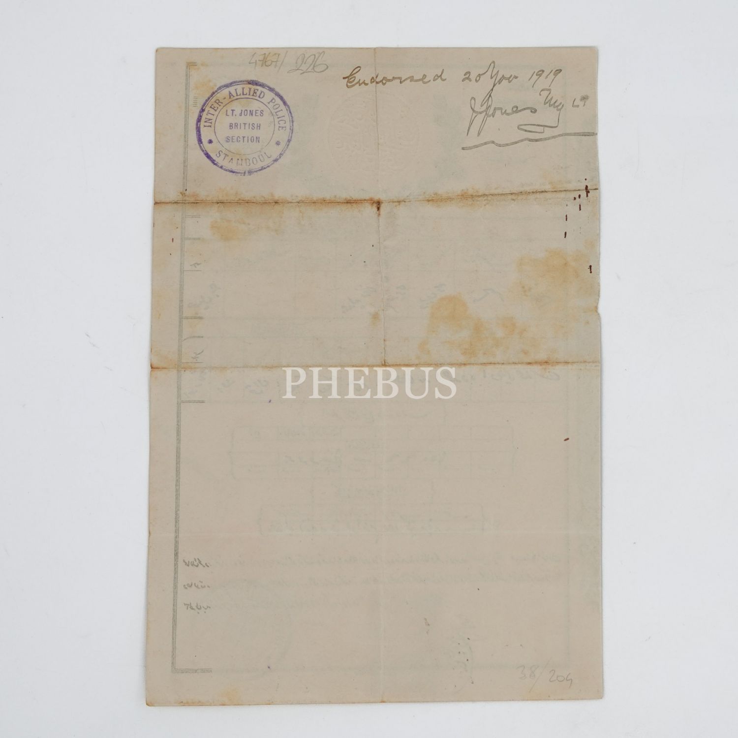 Adliye Nezareti Levazım Müdürü Cemil Bey´in Browning 10.66 model silahının taşıma ruhsatı, 24x17 cm...