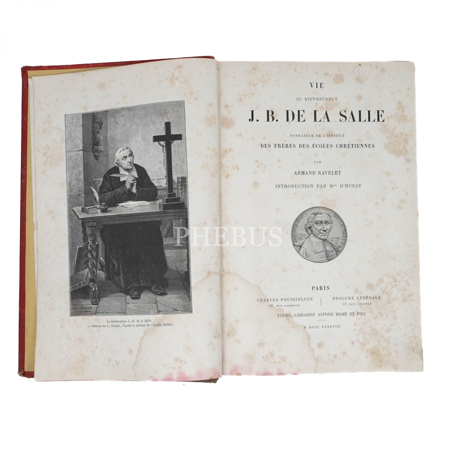 VIE DU BIENHEUREUX J. B. DE LA SALLE (Fondateur de L´Instıtus des Frères des Ecoles Chretiennes), Armand Ravelet, 1888, Tours, Librairie Alfred Mame et Fils, 359 sayfa, 19x29 cm...
