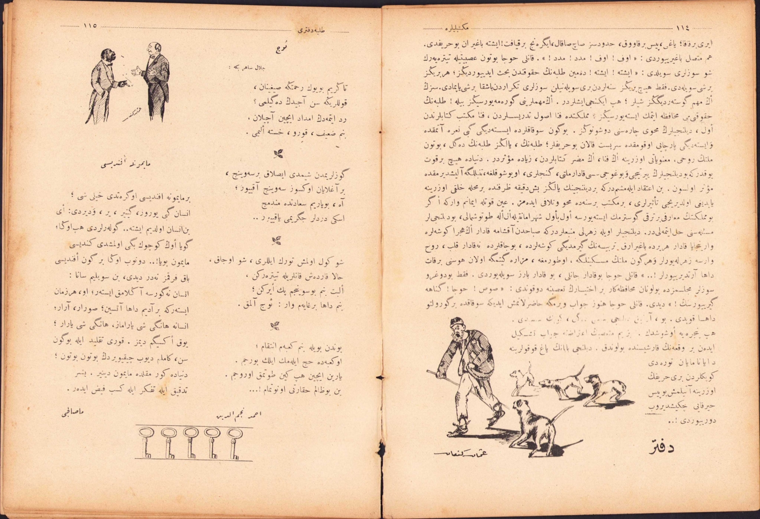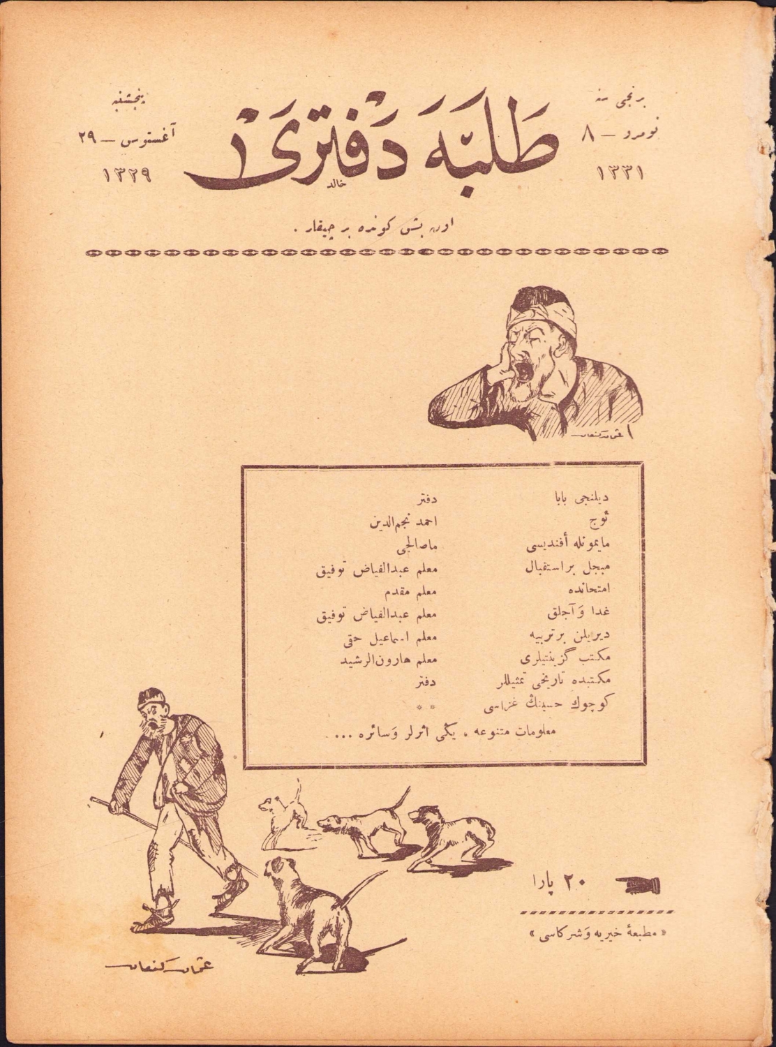 Osmanlıca Talebe Defteri 1329, resimli, cilt çıkması, sayfaların bazıları haliyle, 20 sayfa, 17x24 cm