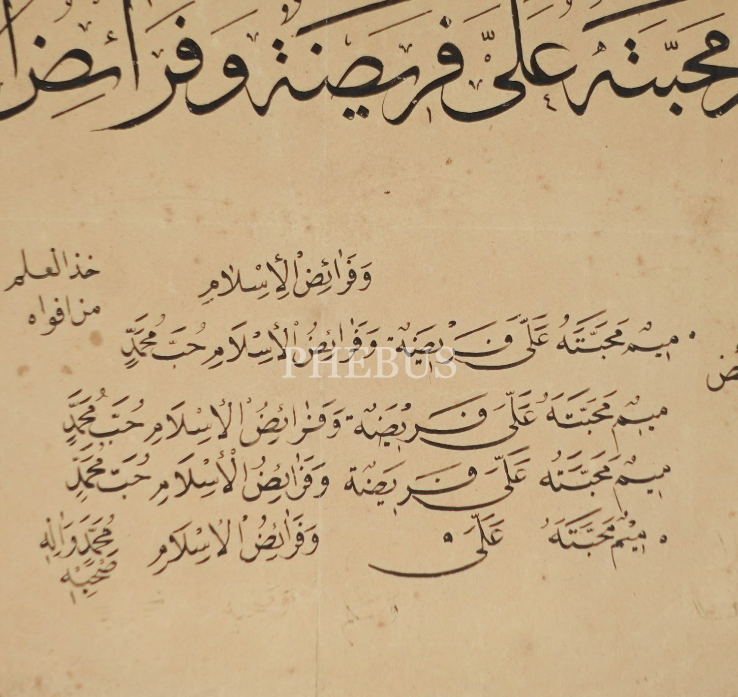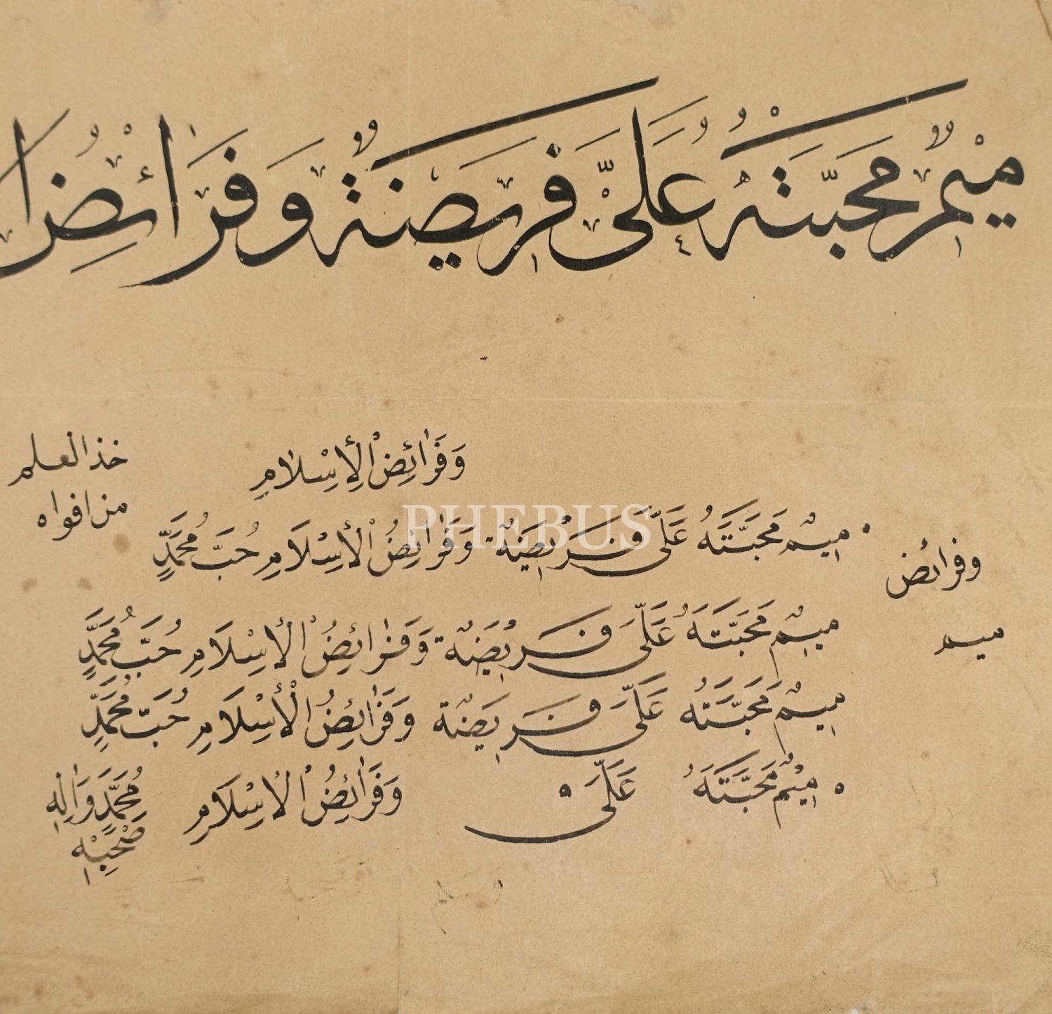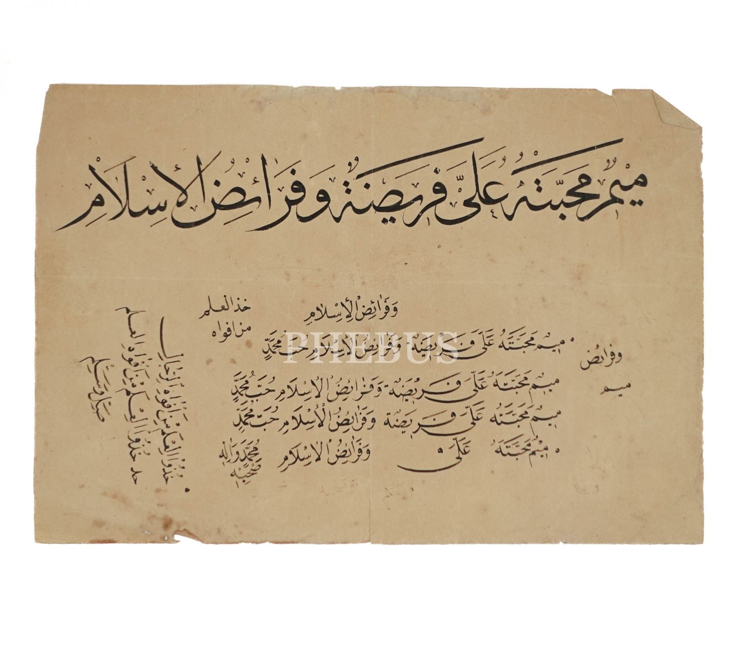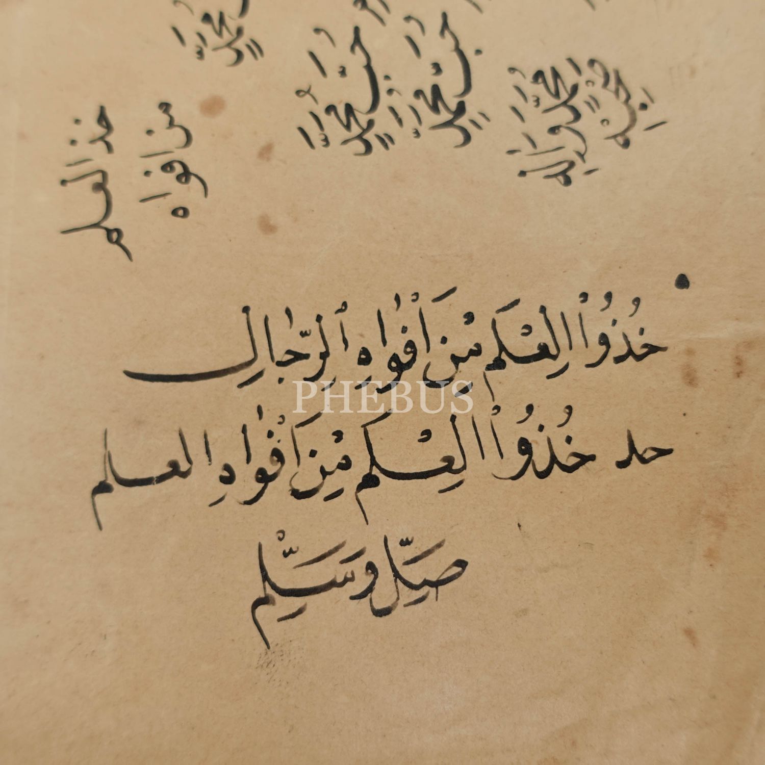 Hoca işi, Elif Kasidesi´nden çeşitli beyitlerin yazılı olduğu sülüs-nesih meşk, 21x15 cm...