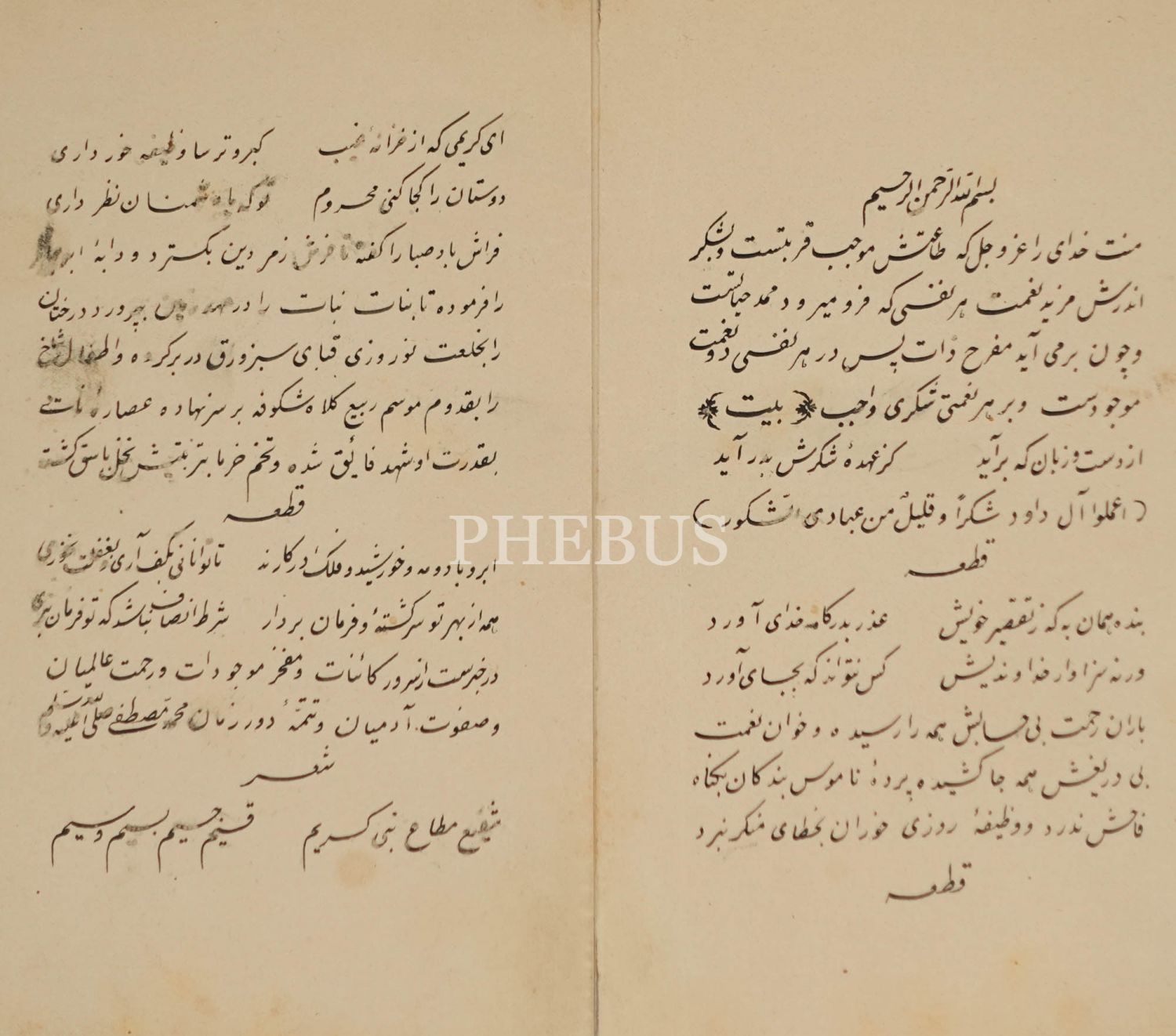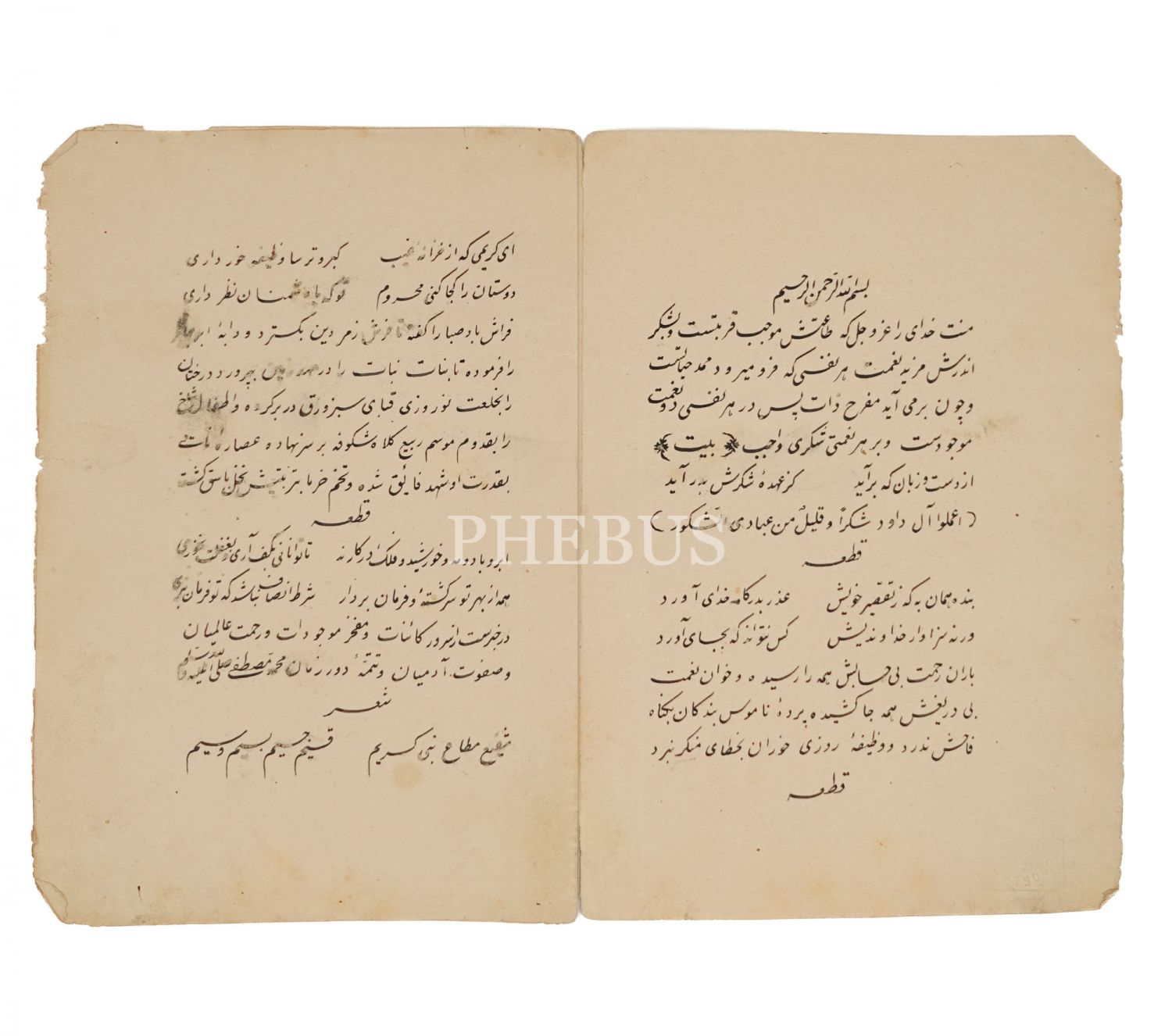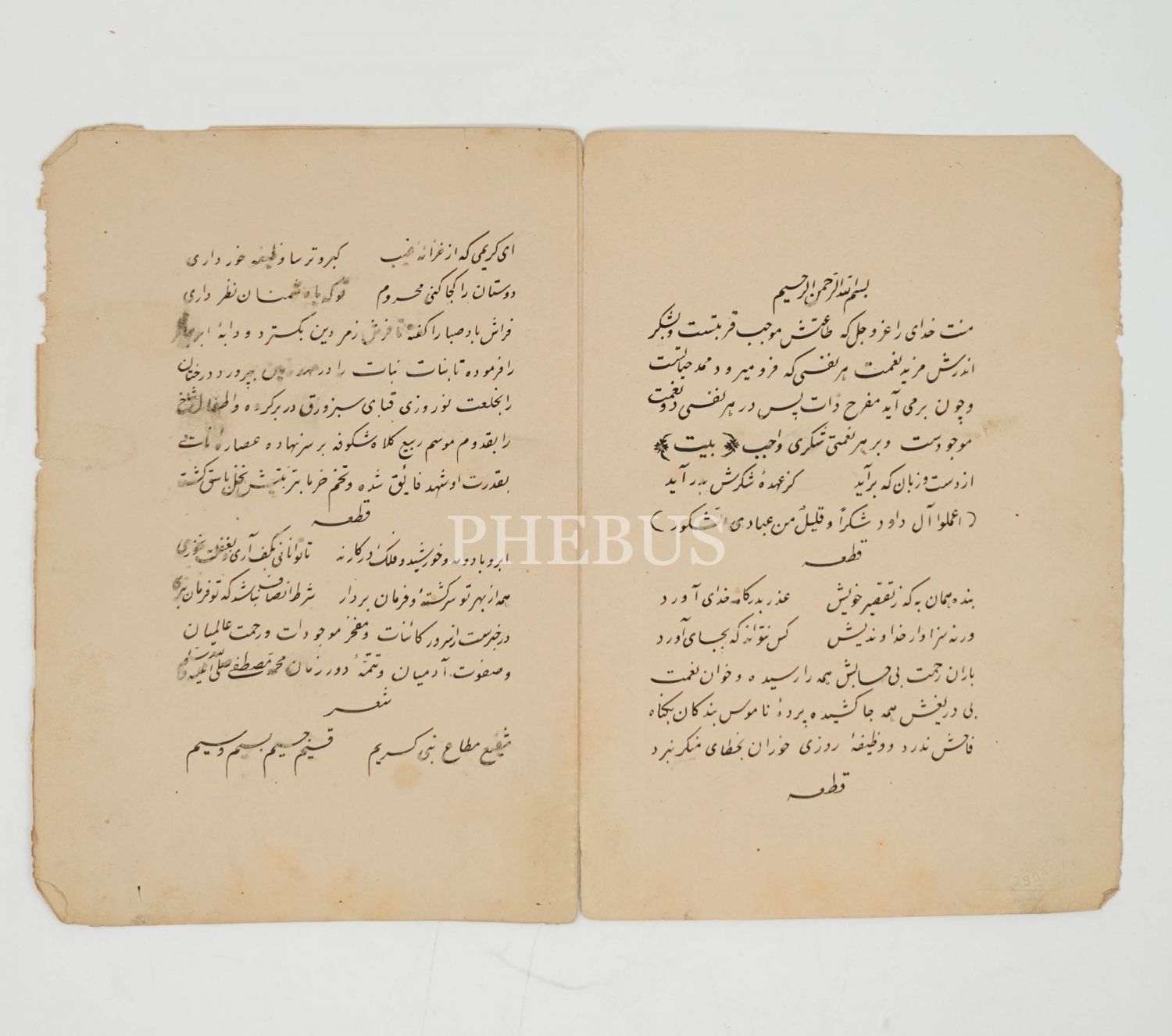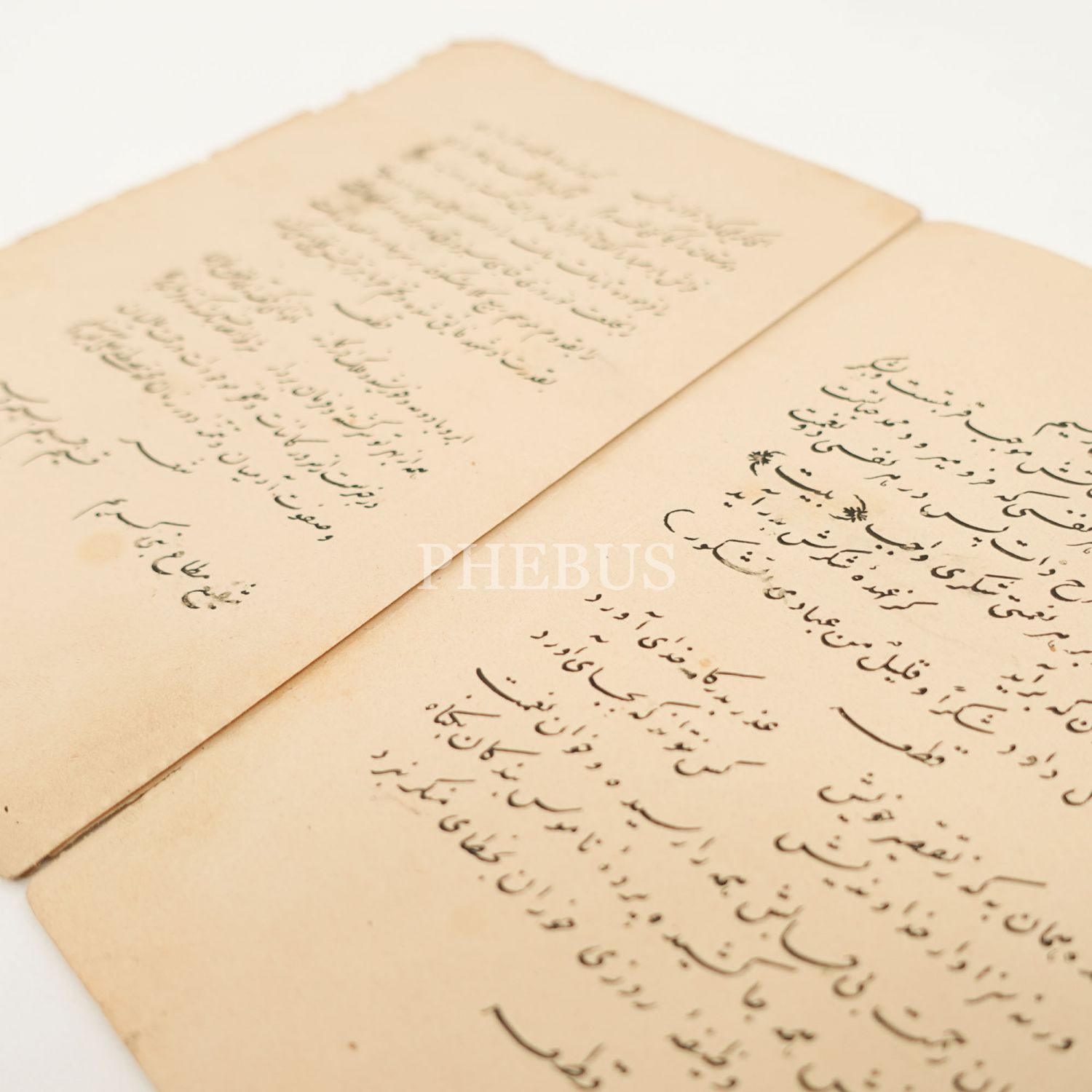 İnce nestalik yazı ile yazılmış Farsça bir şiir kitabının ilk iki sayfası, sayfa boyu 17x12 cm...