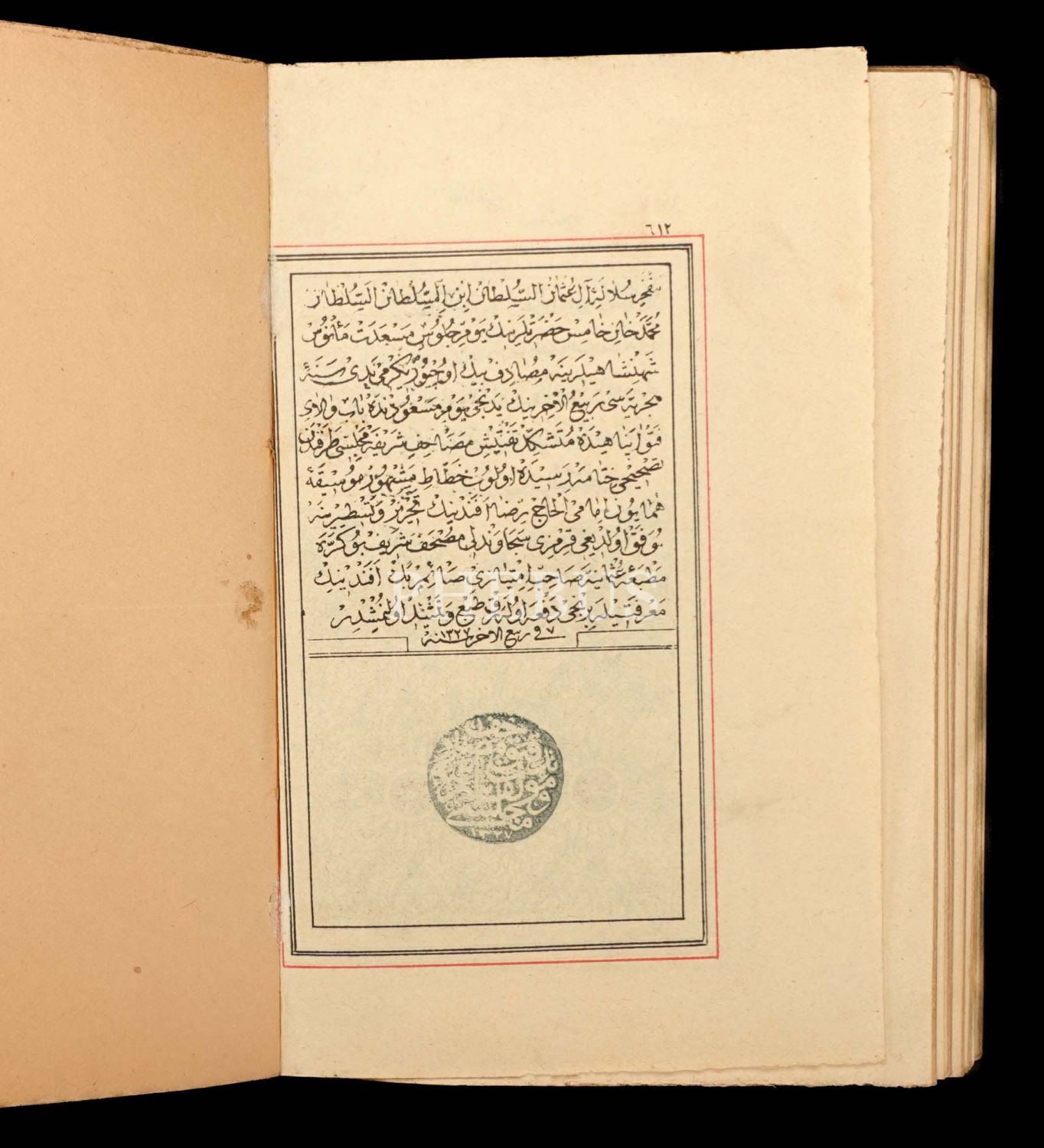 Müzika-yı Hümayun İmamı Hacı Ramazan Efendi´nin hattından taşbaskı orjinal dönem kutusunda Kuran-ı Kerim, 1327 tarihli, 612 sayfa, 17x11 cm...