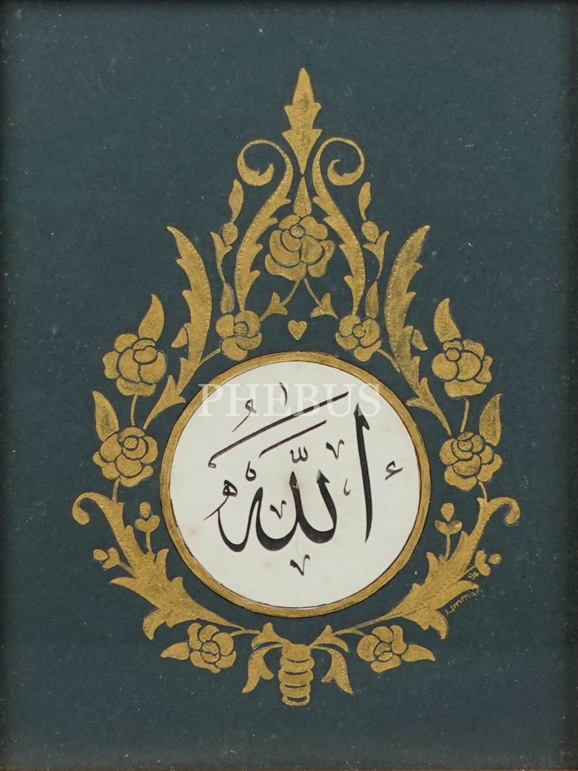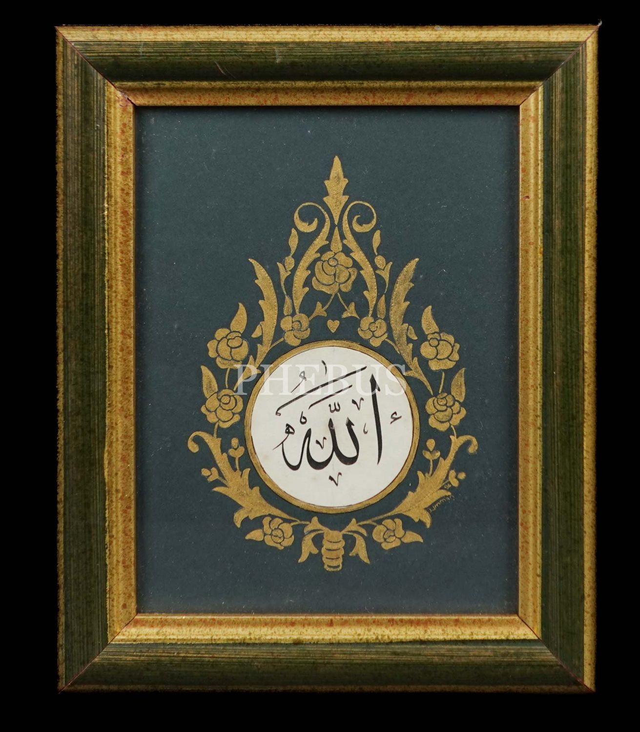 Sülüs "Allah" lafzı, tezhip: Umman 1996, çerçeve ölçü: 20x16 cm...