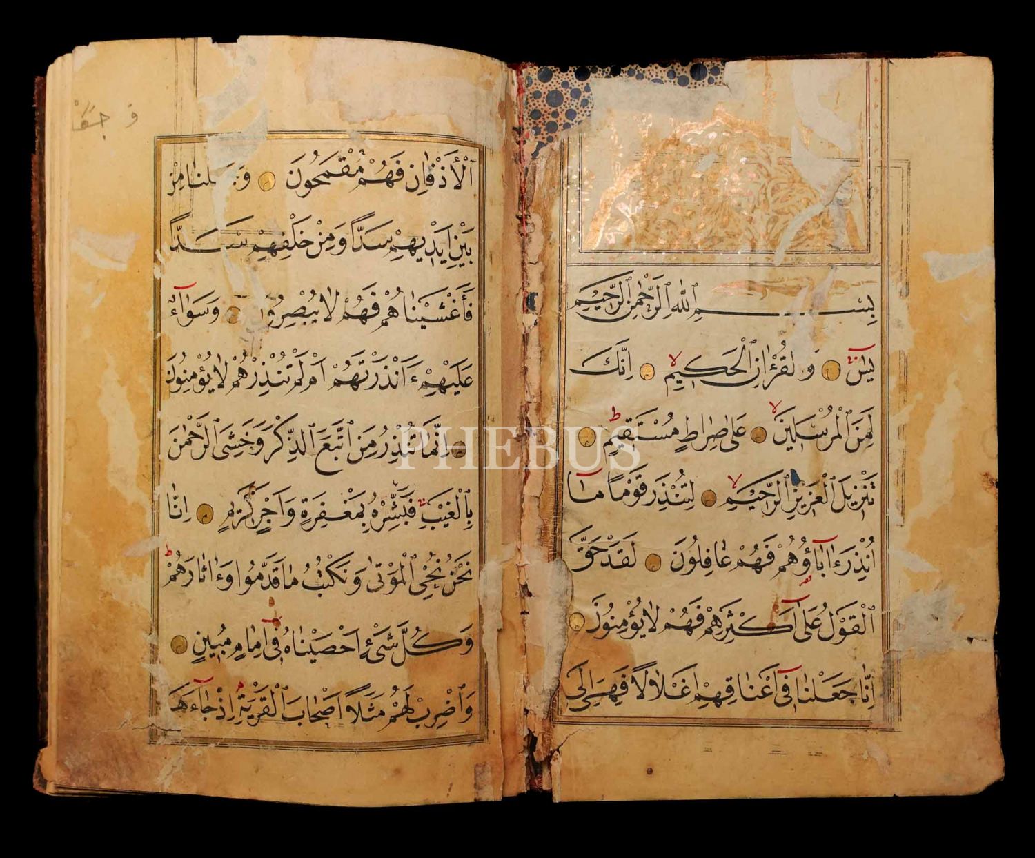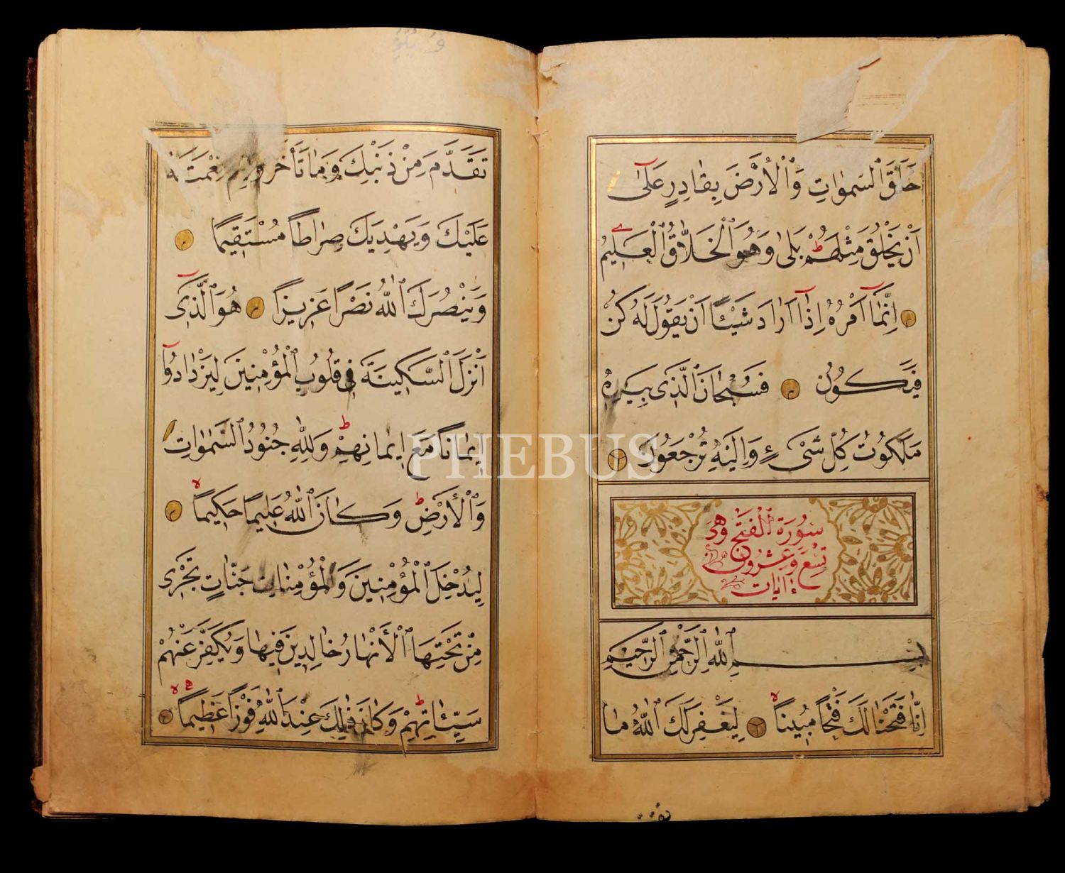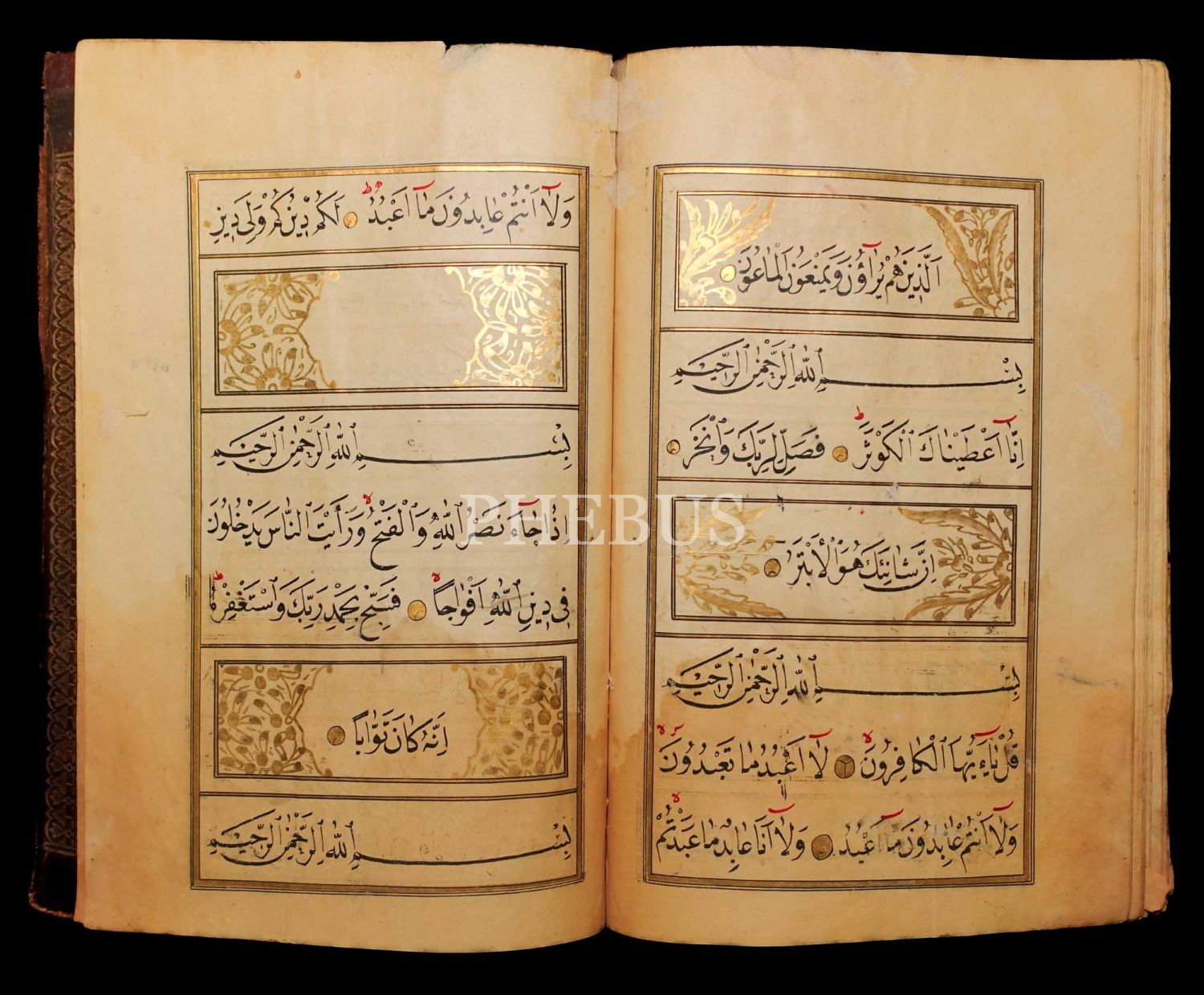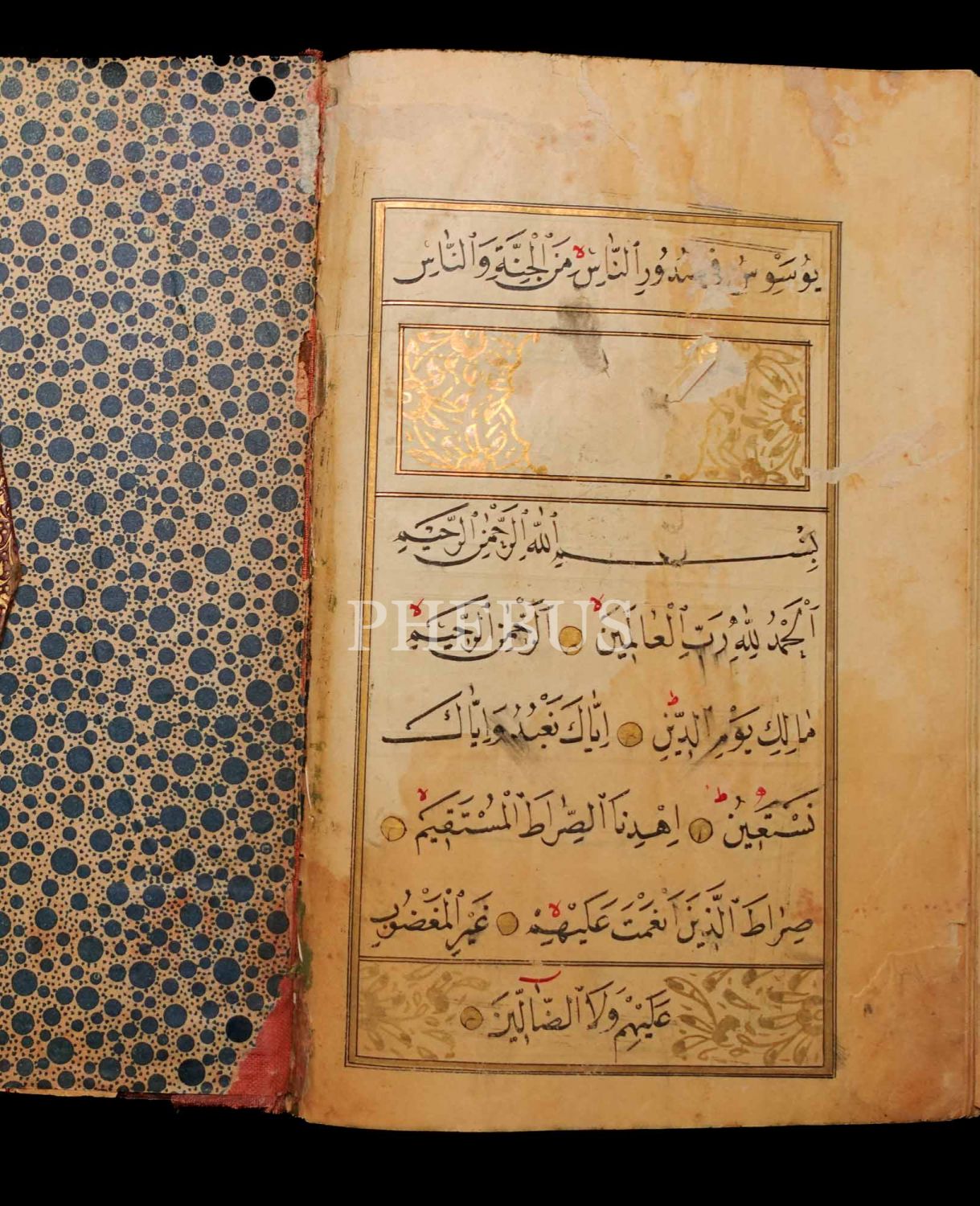 Enam-ı Şerif (Yasin, Fetih, Mülk sureleri ve kısa sureler), tüm sayfaları tahrirli cetvelli, tamir görmüş deri dönem cildinde, 55 sayfa, 22x14 cm...