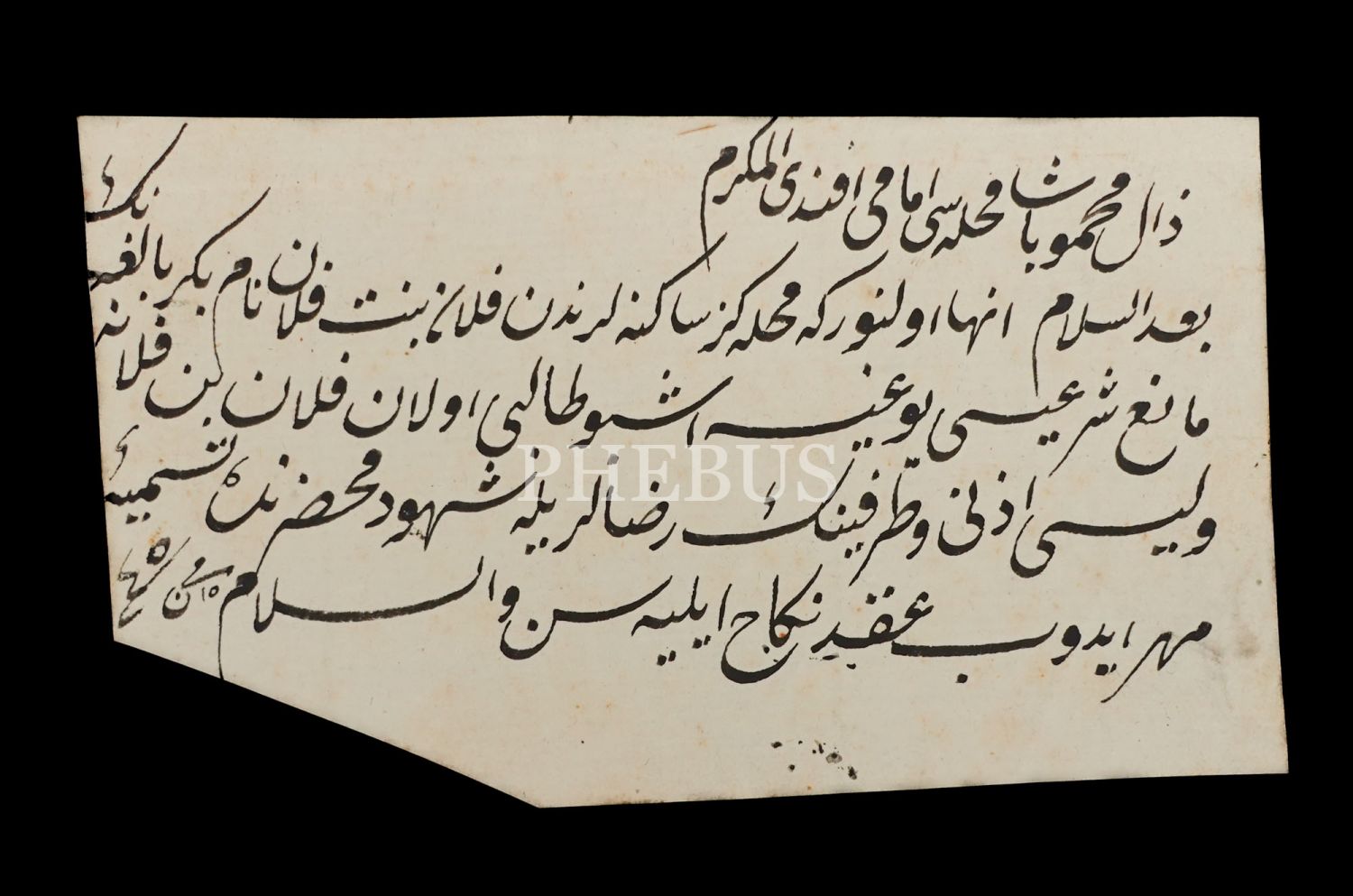 Osmanlı nikah izin kağıdı, Zal Mahmud Paşa Mahallesi imamına yazılmış yazı, 45 (1145 veya 1245) tarihli, 14x8 cm...