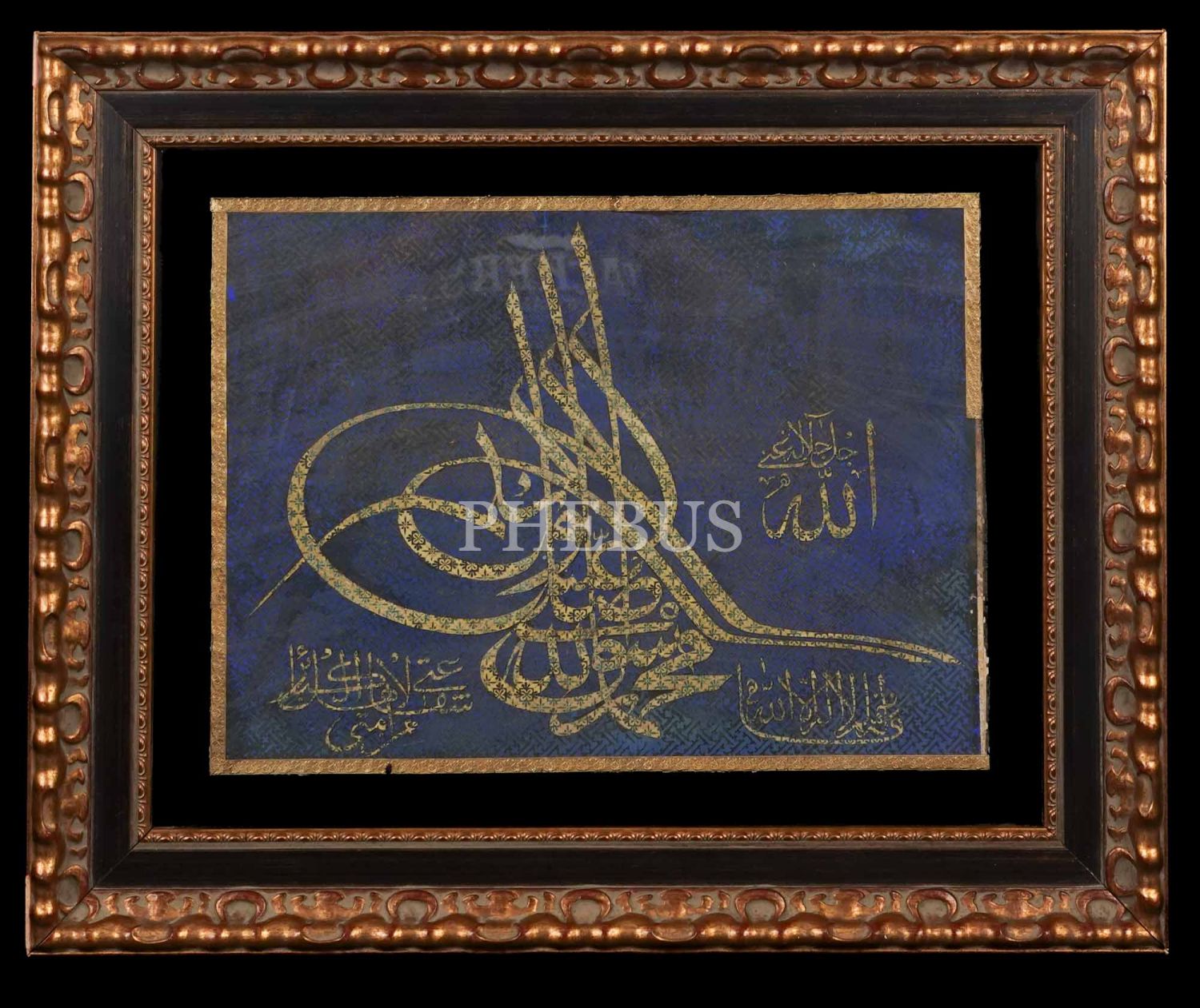 Katı´ sanatı ile yapılmış Tuğra formunda kelime-i tevhid, çerçeve ölçü: 60x50 cm...