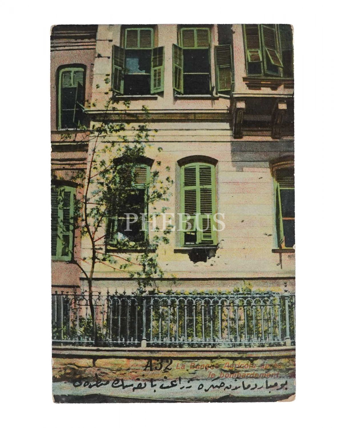31 Mart Vakası esnasında bombalanan Ziraat Bankası´nın görünümü, "La Banque Agricola apres le bombardement", ed. Max Fruchtermann, Constantinople, 9x14 cm...