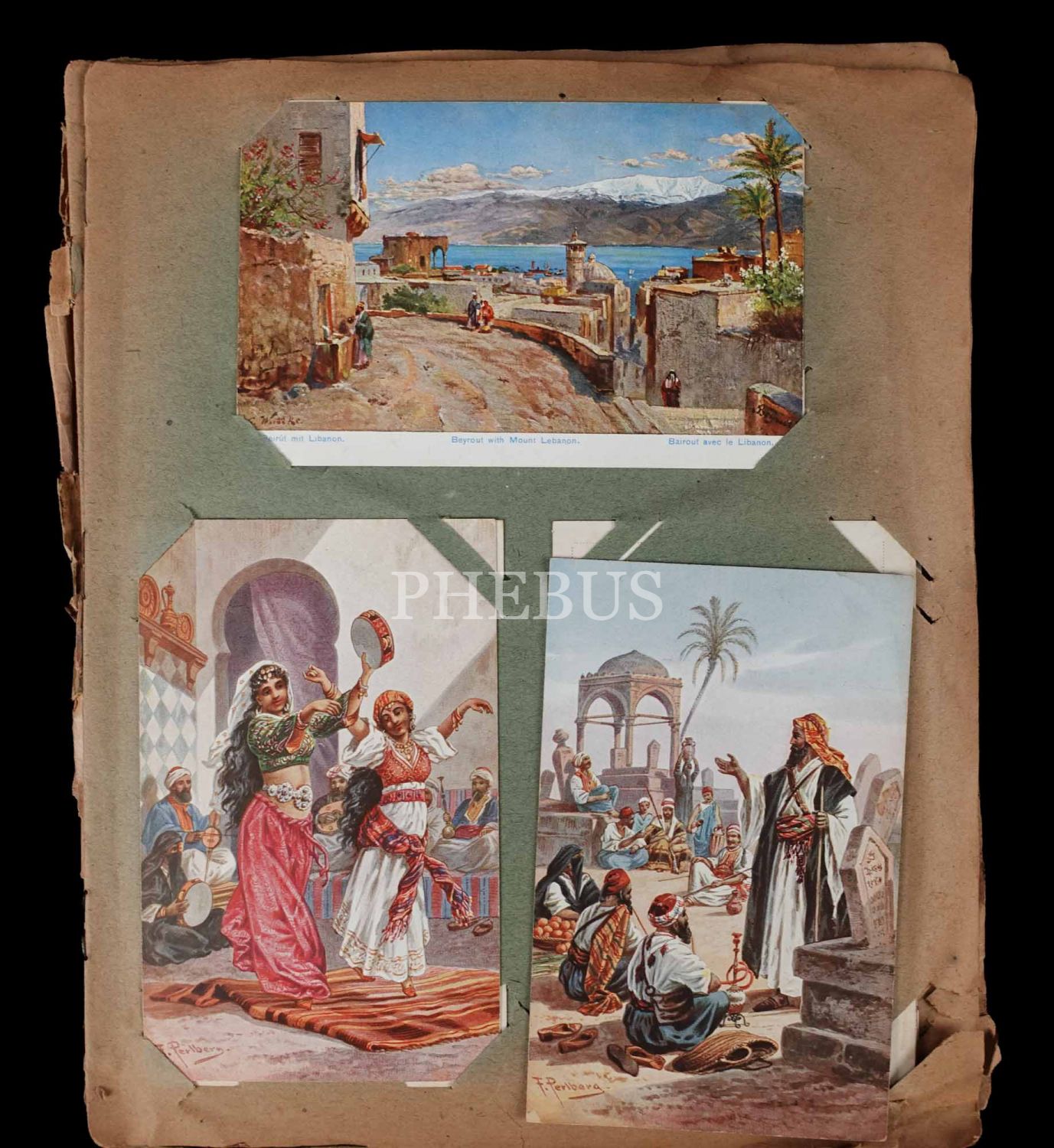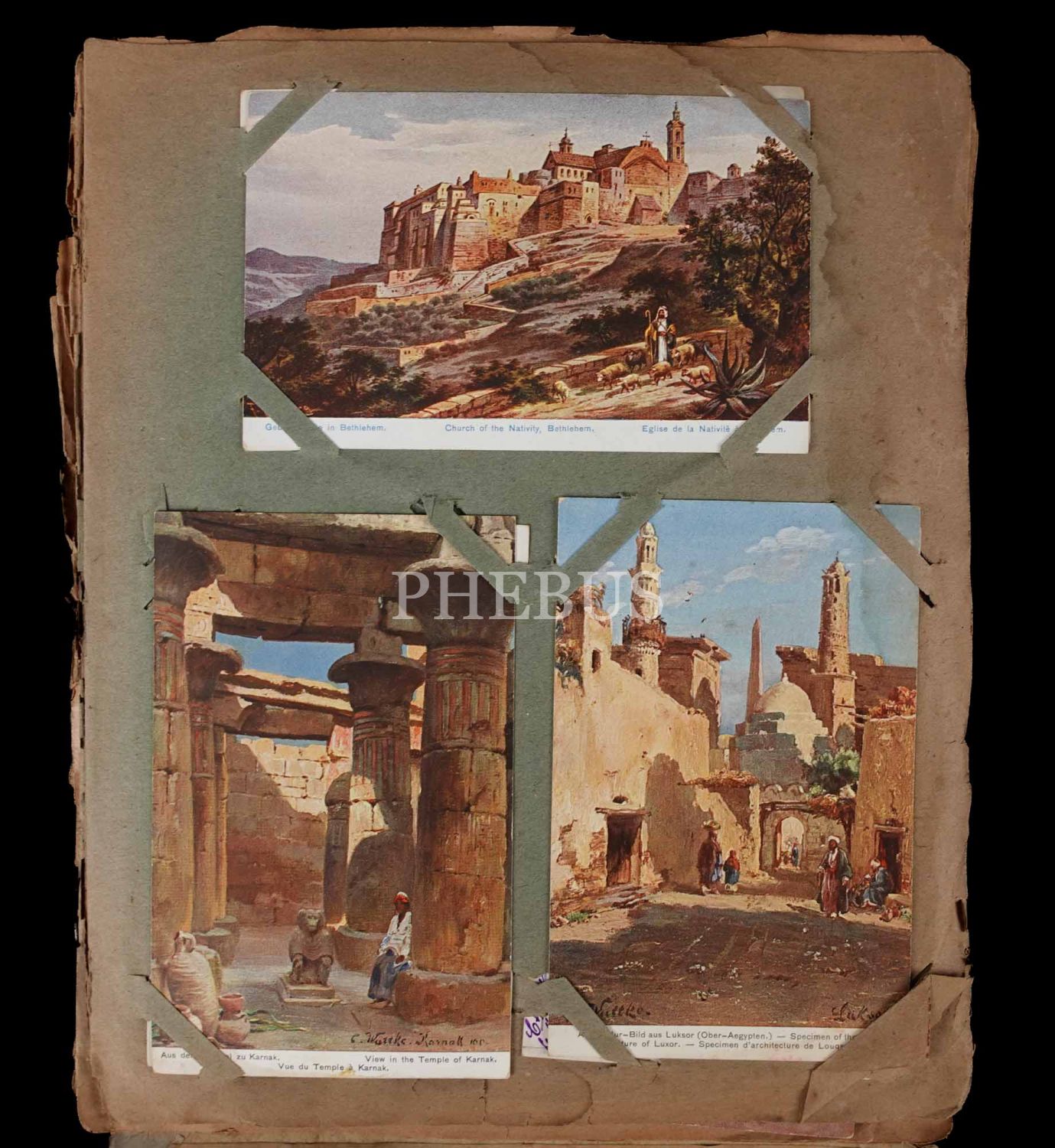 Kudüs, Nasıra, Yafa, Beytüllahim, Şam, Beyrut, Kahire, İskenderiye, İstanbul, Atina vd. şehirlere ait toplam 120 adet kartpostal içeren albüm, 23x28 cm...