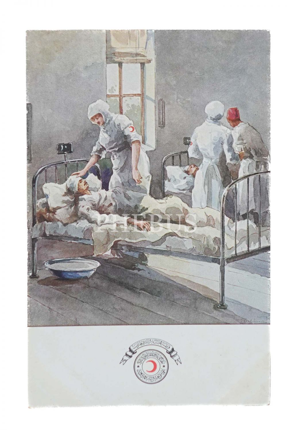 Yaralı askerlerle ilgilenen Hilal-i Ahmer hemşireleri, ed. Hilal-i Ahmer Cemiyeti, 9x14 cm...