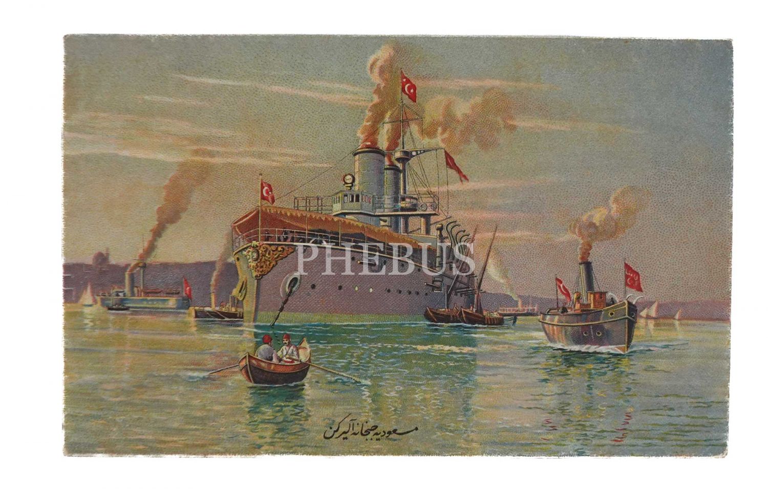 Mesudiye Zırhlısı cephane alırken, Donanma-yı Osmani Muavenet-i Milliye Cemiyeti, 14x9 cm...