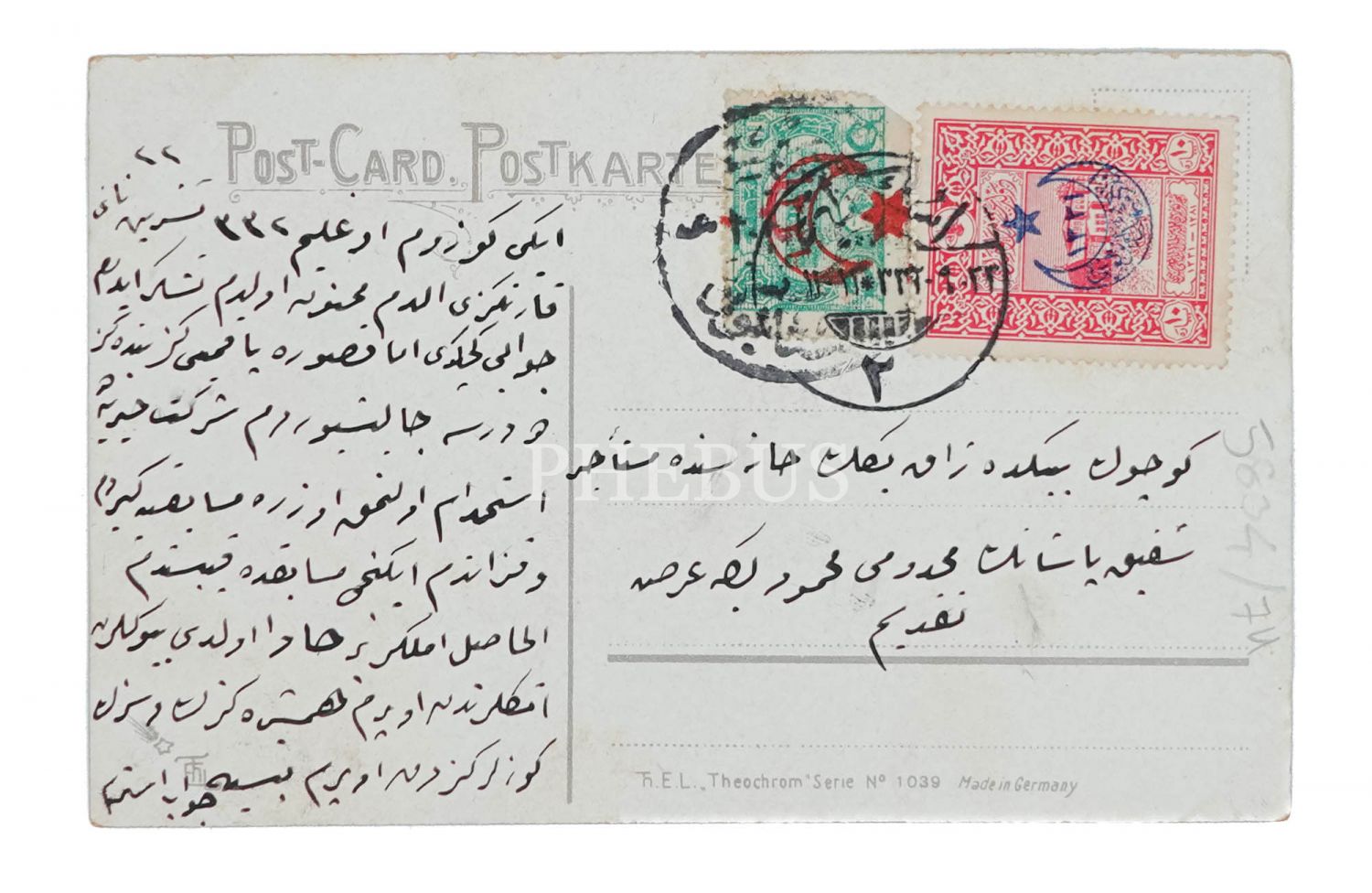Postadan geçmiştir. Arka yüzünde Osmanlıca mektup yer almaktadır.