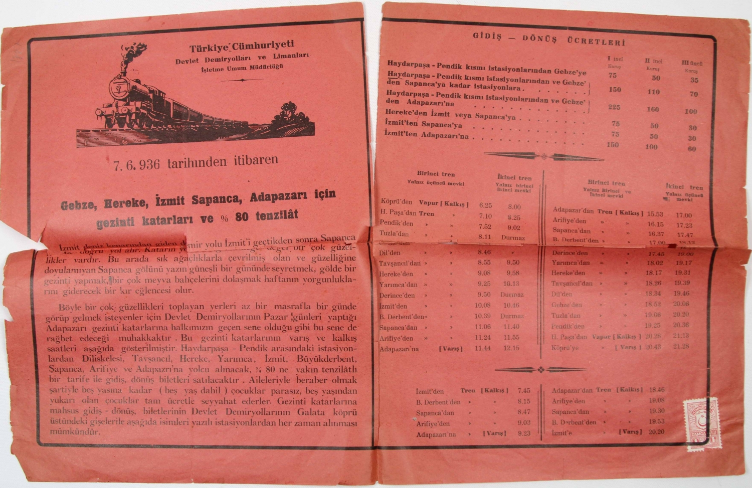 Devlet Demiryolları gidiş - dönüş ücretleri, haliyle,45x30 cm