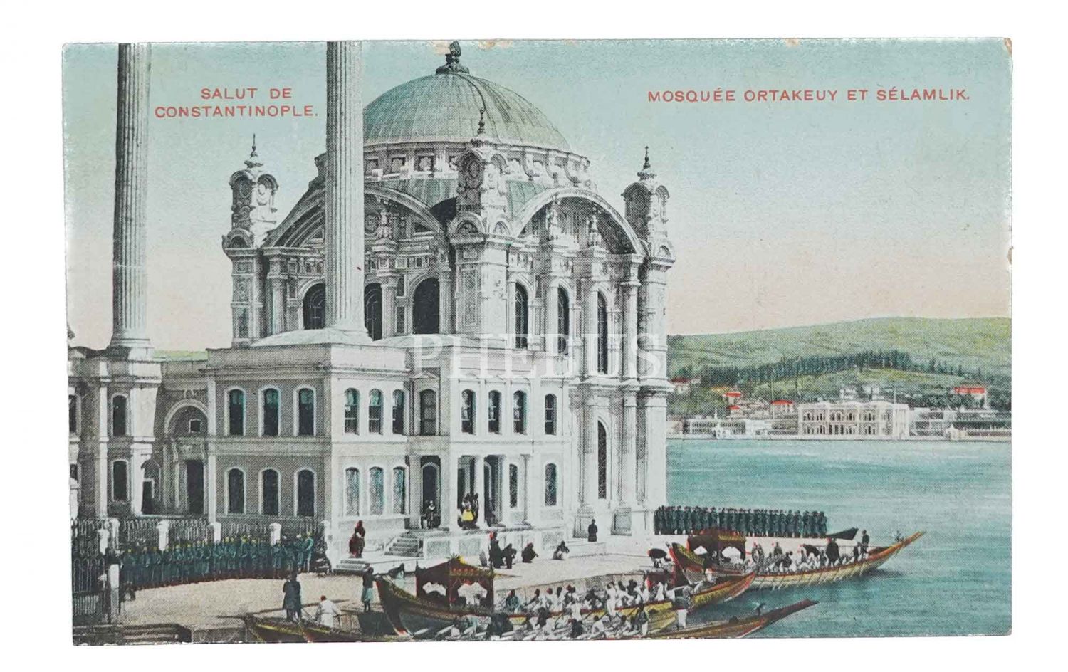 Ortaköy Camii´nde selamlık merasimi, "Mosquee Ortakeuy et Selamlık", 14x9 cm...
