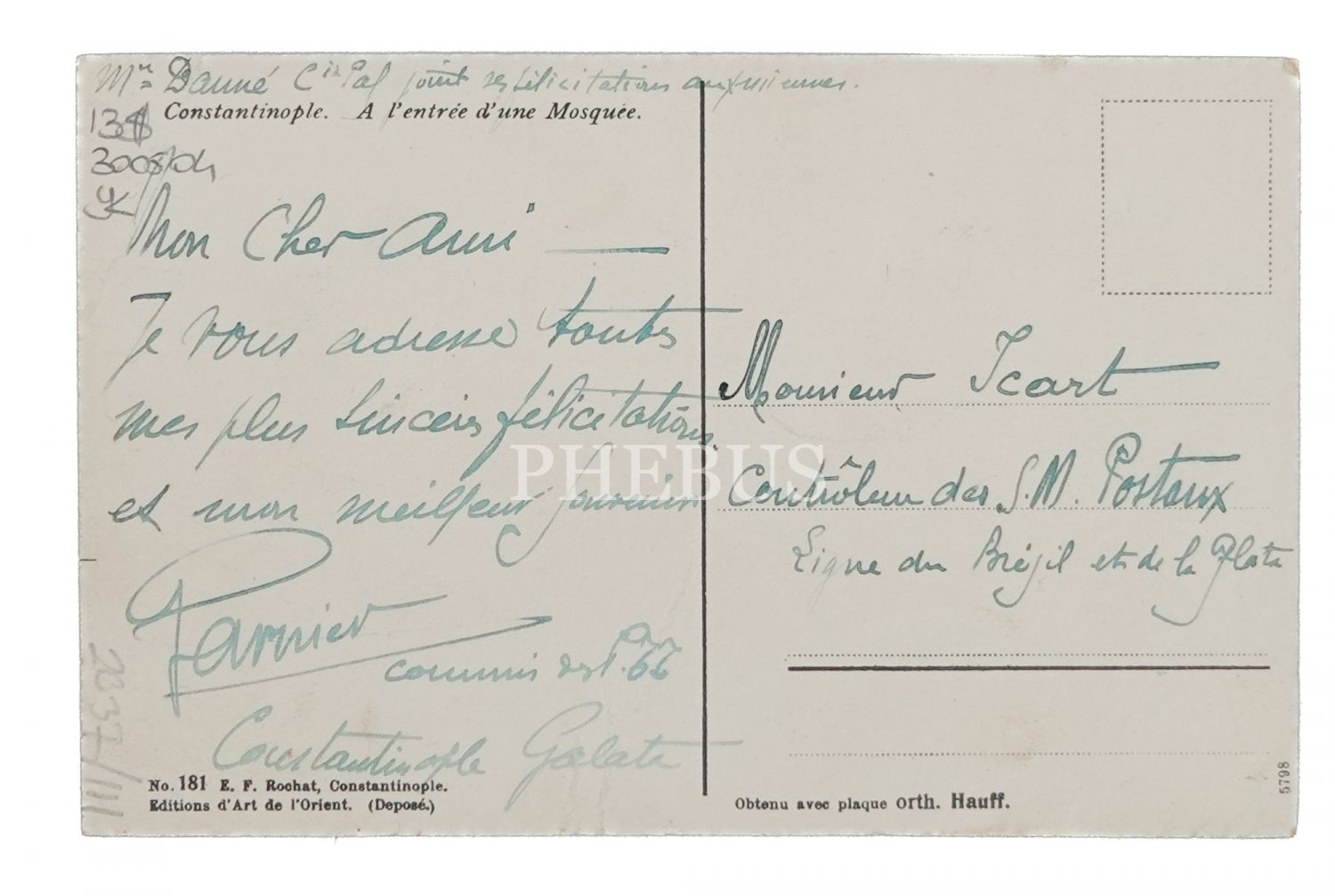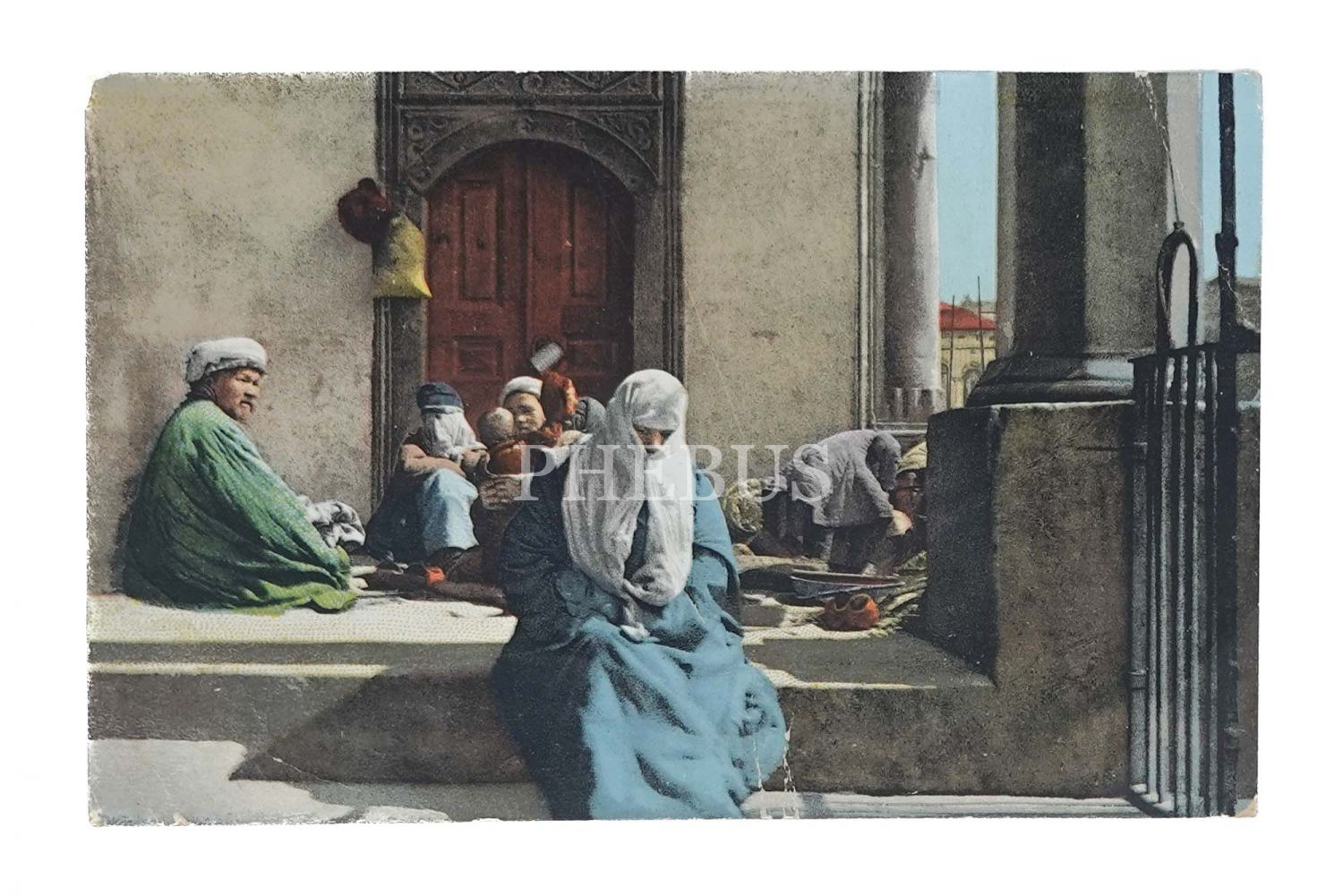 Osmanlı döneminden bir aile, "A l´entree d´une Mosque", ed. E. F. Rochat, Constantinople,14x9 cm...