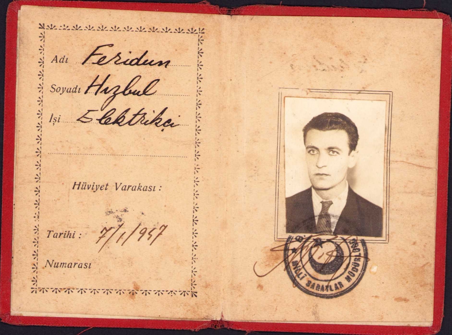 Büyük Millet Meclisi Milli Saraylar Müdürlüğü Hüviyet Varakası, 1942, 7x11 cm