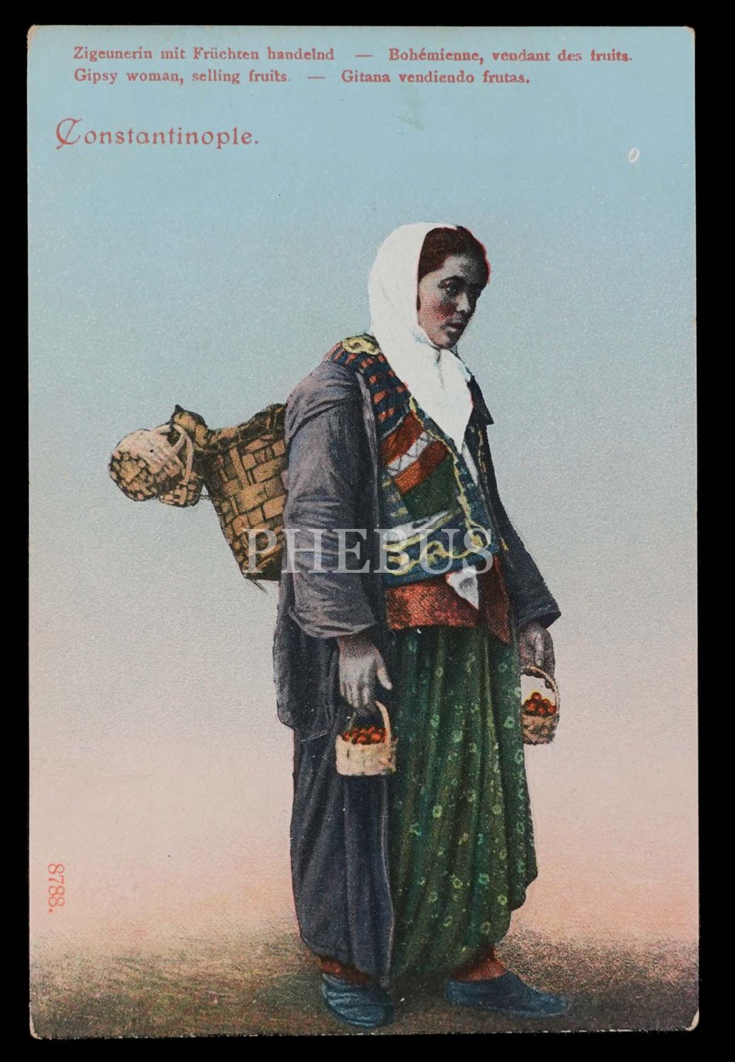 Meyve satan kadın, "Zigeunerin mit Früchten handeland", 14x9 cm...