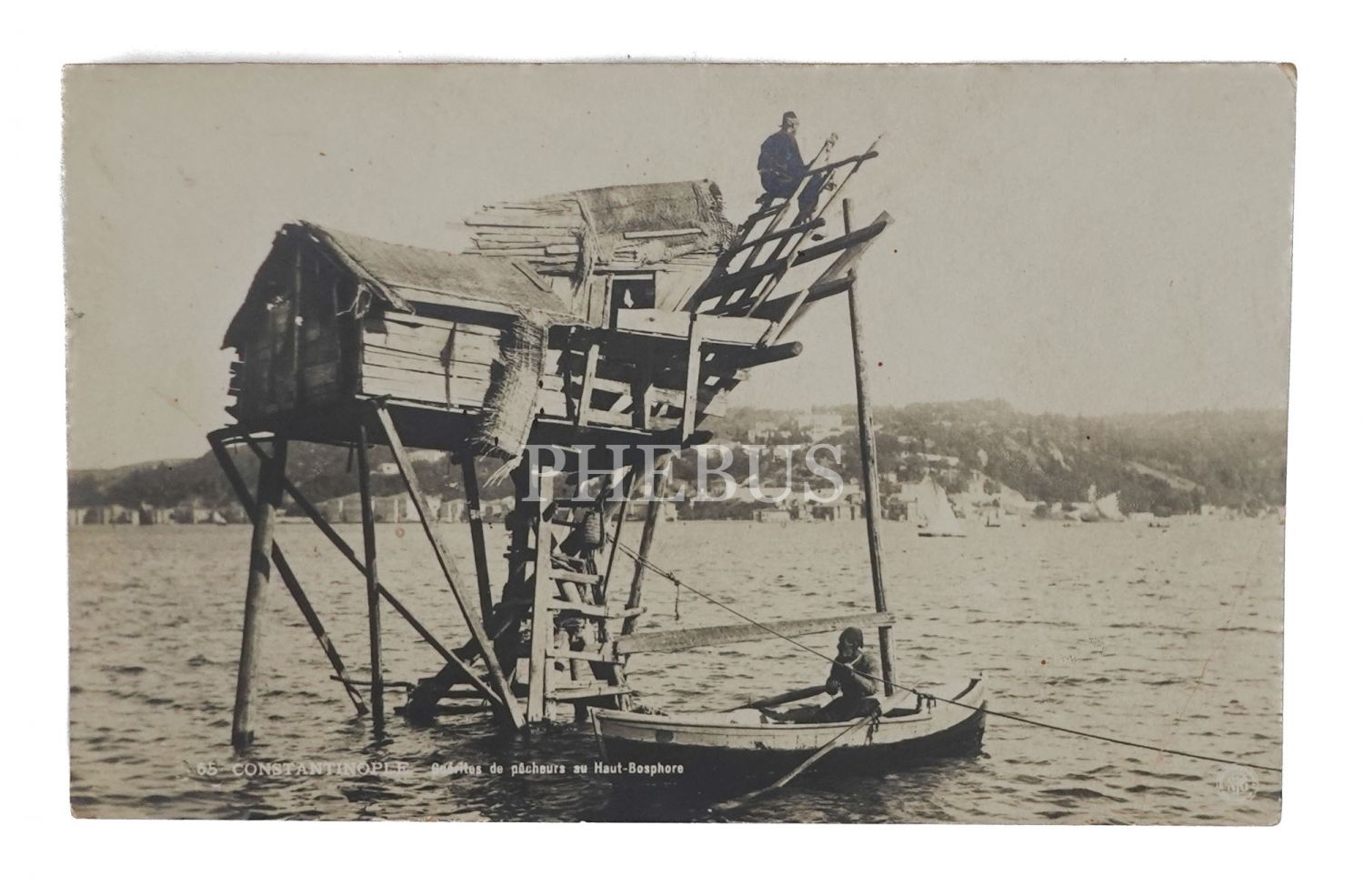 Boğaz´da balıkçılar," Guerites de pacheurs au Haut-Bosphore", 14x9 cm...