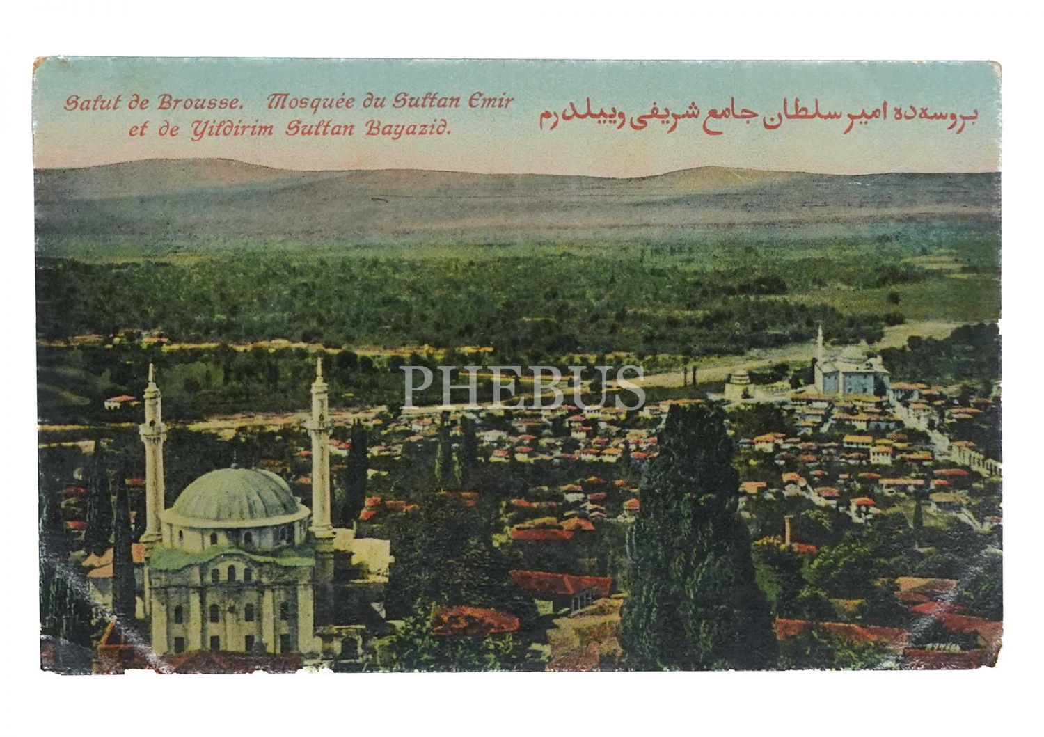 Bursa Emir Sultan Camii ve Yıldırım Sultan Bayazid Camii, "Mosque du Sultan Emir et de Yıldırım Sultan Bayazid", 14x9 cm...