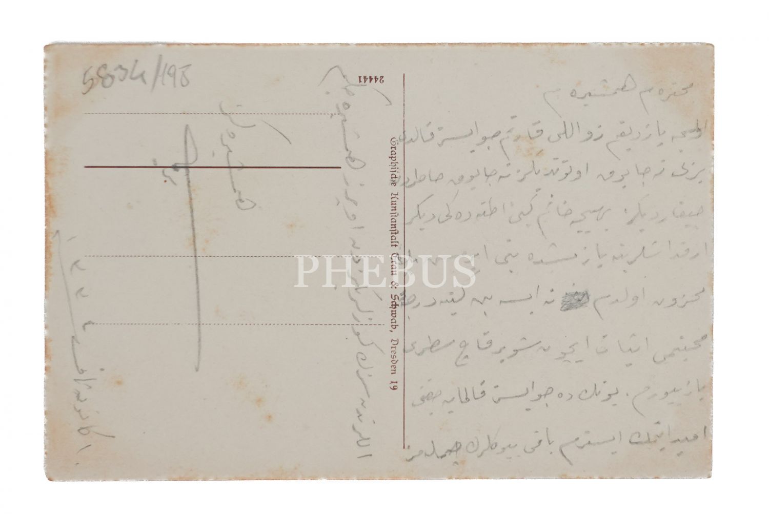 Postadan geçmiştir. Arka yüzünde, "Muhterem hemşireme" hitabıyla kaleme alınmış Osmanlıca bir mektup yer almaktadır.