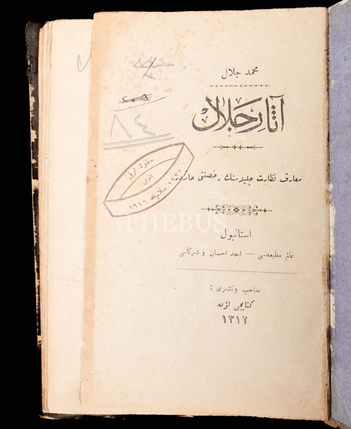ASAR-I CELAL, Mehmed Celal, 1312, Alem Matbaası Ahmed İhsan ve Şürekası, 104 sayfa, 13x19 cm...