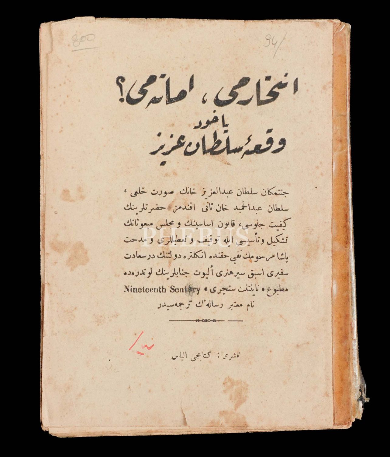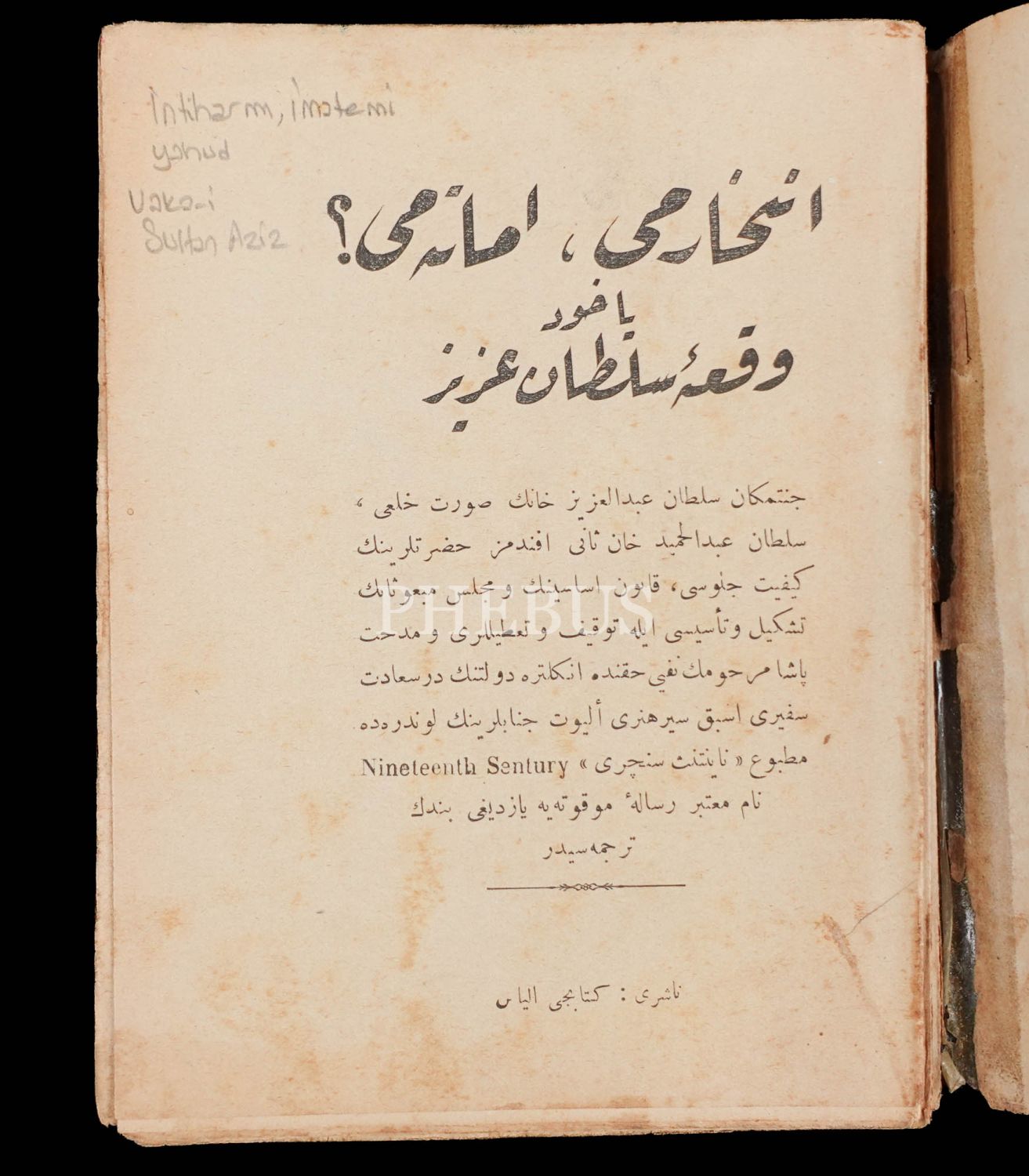 İNTİHAR MI, İMÂTE Mİ? YAHUD VAK´A-I SULTAN AZİZ, Henry Eliot, Kitapçı İlyas, 47 sayfa, 13x17 cm...