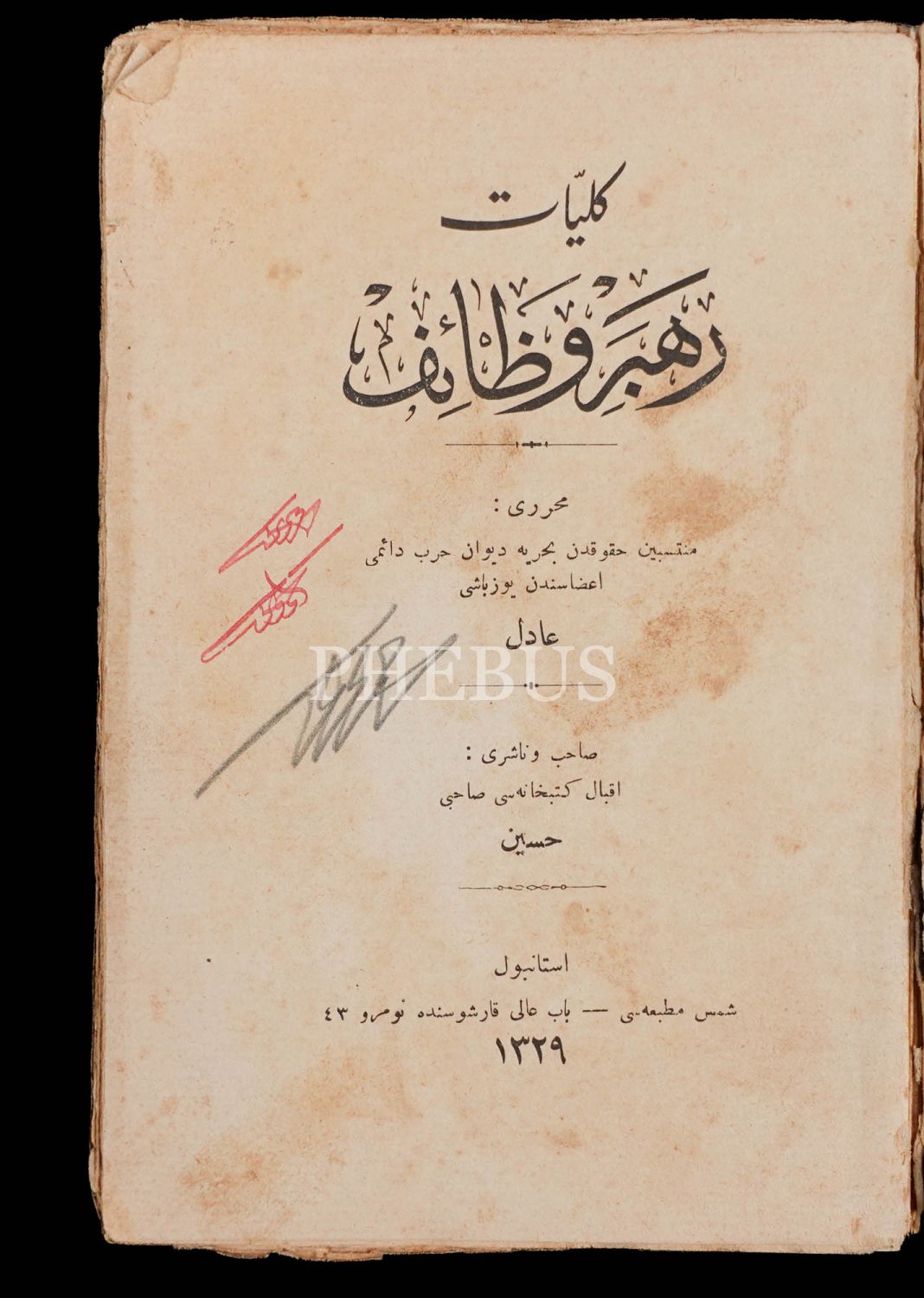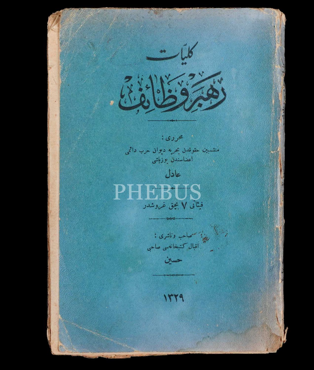 KÜLLİYAT-I REHBER-İ VEZAİF, Adil, 1329, Şems Matbaası, 179 sayfa, 13x19 cm...