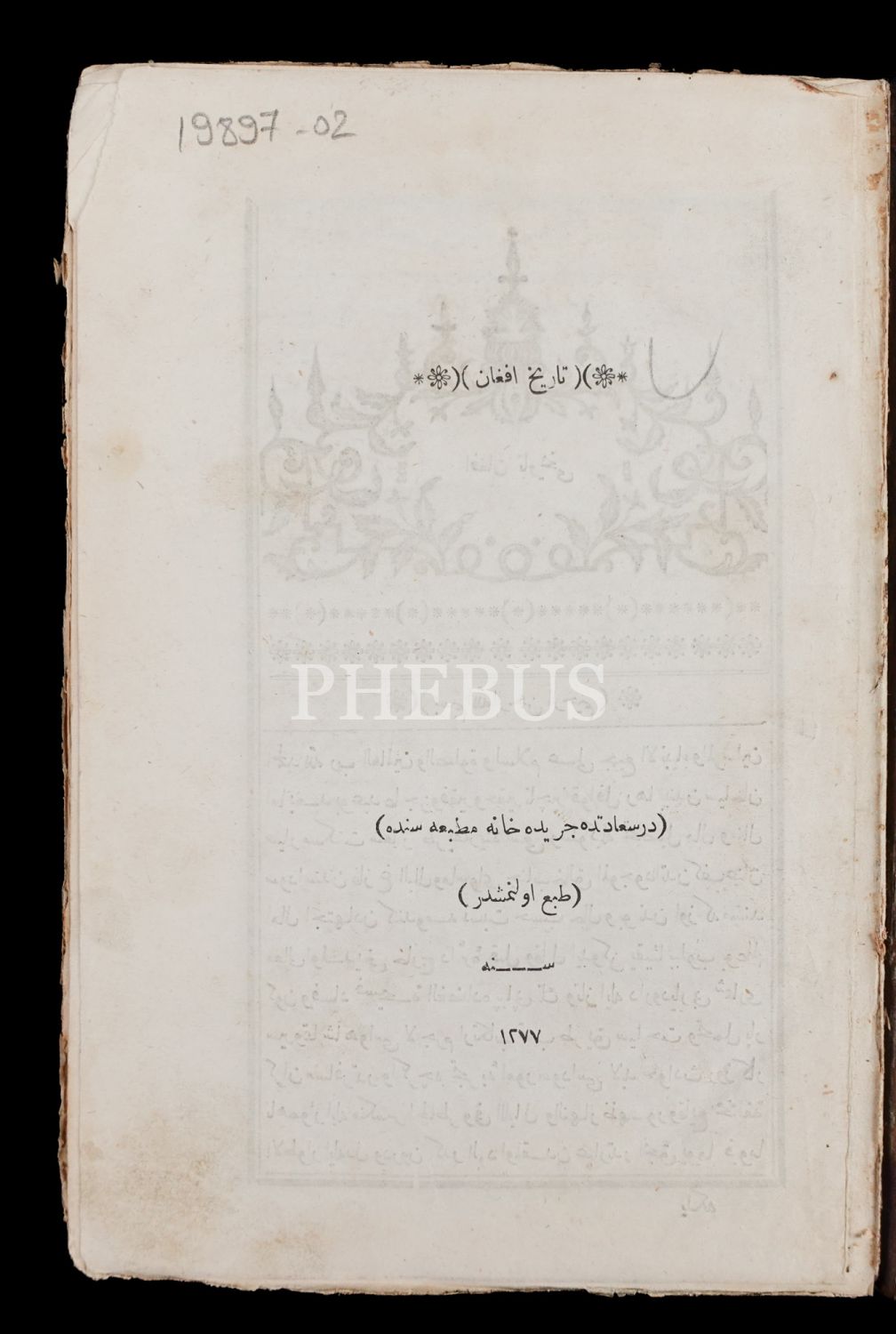 AFGAN TARİHİ, 1277, Ceridehane Matbaası, 174 sayfa, 14x21 cm...