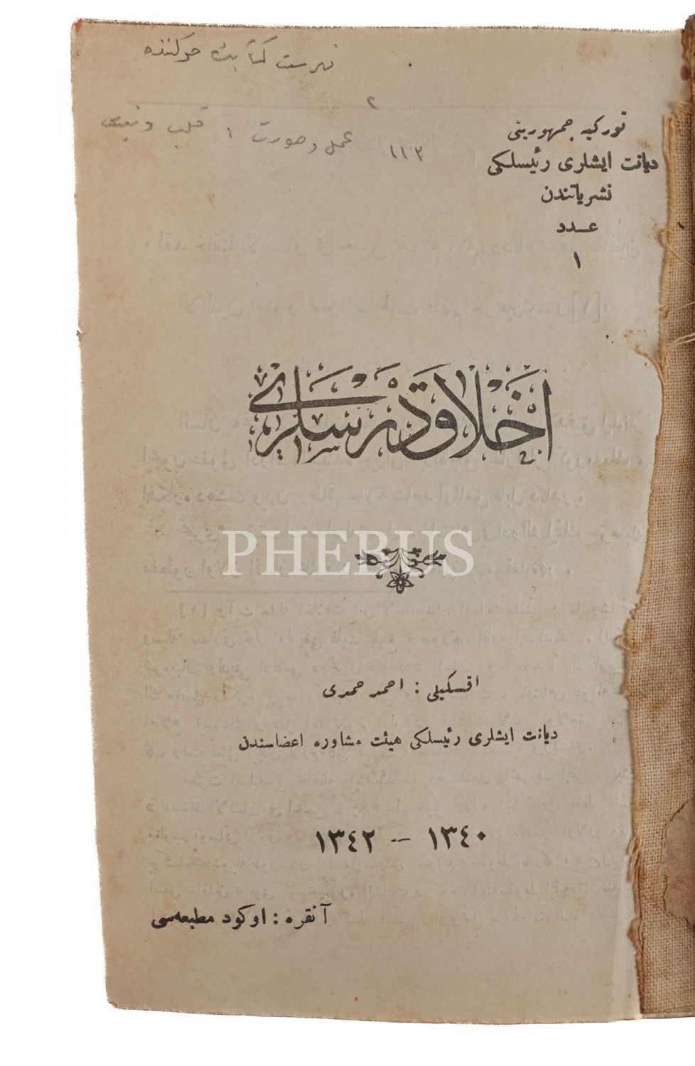 AHLAK DERSLERİ, Ahmed Hamdi [Akseki], 1342, Öğüd Matbaası, Türkiye Cumhuriyeti Diyanet İşleri Reisliği Neşriyatı , 426 sayfa, 14x20 cm...