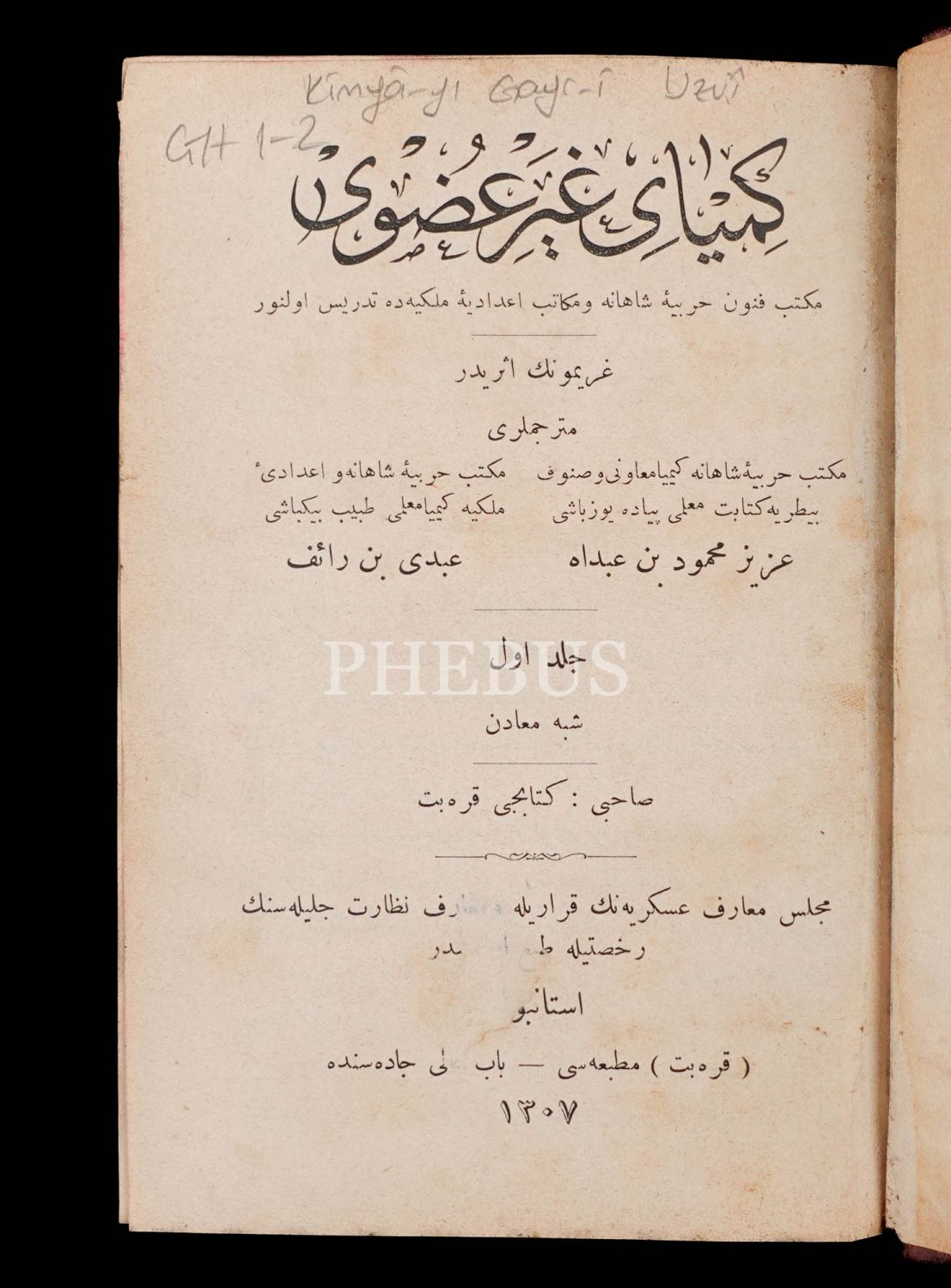 KİMYA-İ GAYR-İ UZVÎ (1 ve 2. Cilt), Eduard Grimaux, (Çeviren: Aziz Mahmud - Abdi ) 1310, Karabet Matbaası, 688 sayfa, 13x18 cm...